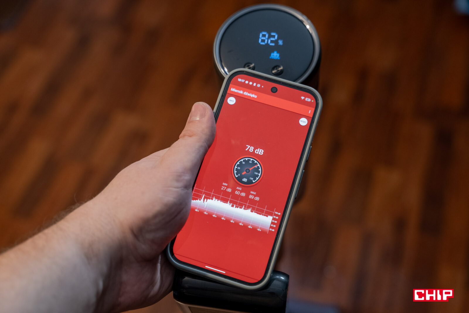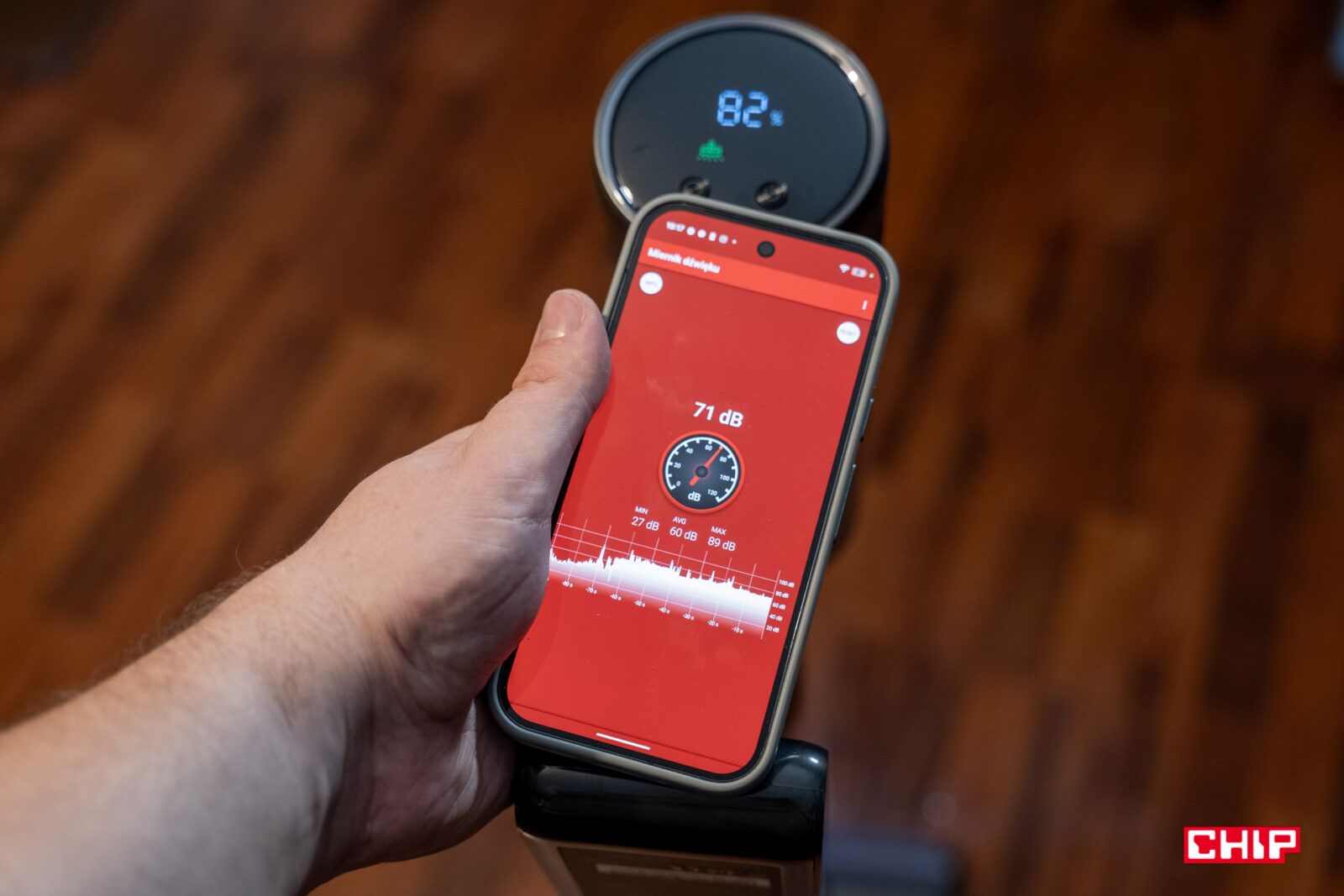 MOVA I10 to odkurzacz ręczny, a takie co do zasady nie są cichymi urządzeniami, w końcu mają za zadanie odkurzać. W przypadku tego modelu możecie spodziewać się wyników głośności nieprzekraczających maksymalnie 78 dB w trybie turbo oraz do 73 dB w trybie ekologicznym. Pomiar przeprowadziłem w bliskiej odległości od urządzenia, a poza głośnością trzeba zauważyć, że sam odgłos pracy nie jest irytujący.