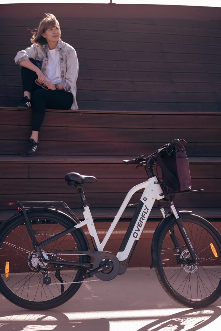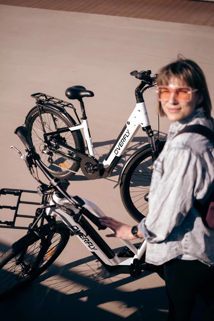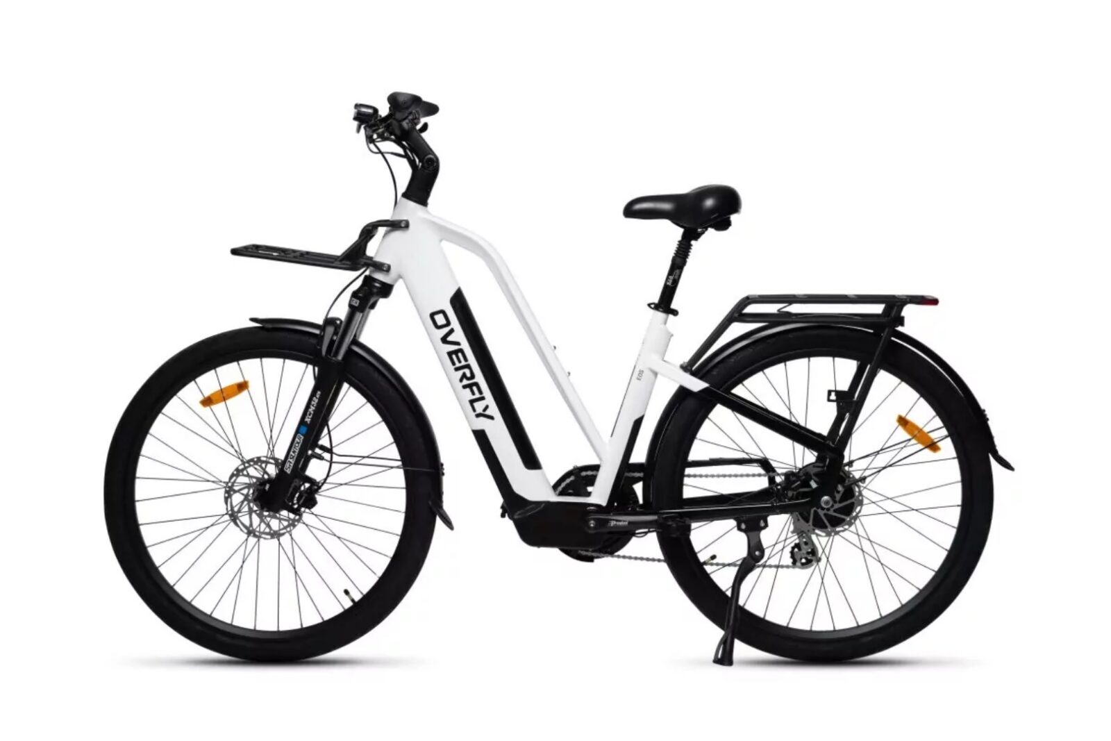 Podstawę roweru Overfly Eos stanowi aluminiowa rama o rozmiarze 17 cali z podwójną rurą środkową i charakterystycznym niskim przekrokiem, który ułatwia codzienne użytkowanie w warunkach miejskich. Całość opiera się na 28-calowych kołach z oponami CST o przekroju 2.0 cala, co z kolei powinno zapewnić stabilność na różnych nawierzchniach. Napęd stanowi zaś silnik 48-V Shengyi zlokalizowany w piaście tylnego koła i generujący moment obrotowy na poziomie 50 Nm z pięcioma poziomami do wybrania z poziomu kontrolera na kierownicy z wyświetlaczem LCD. Taki silnik nie bije więc rekordów, ale do miejskiej jazdy będzie idealny. Tyczy się to również hydraulicznych hamulców tarczowych Tektro o średnicy 160 mm.