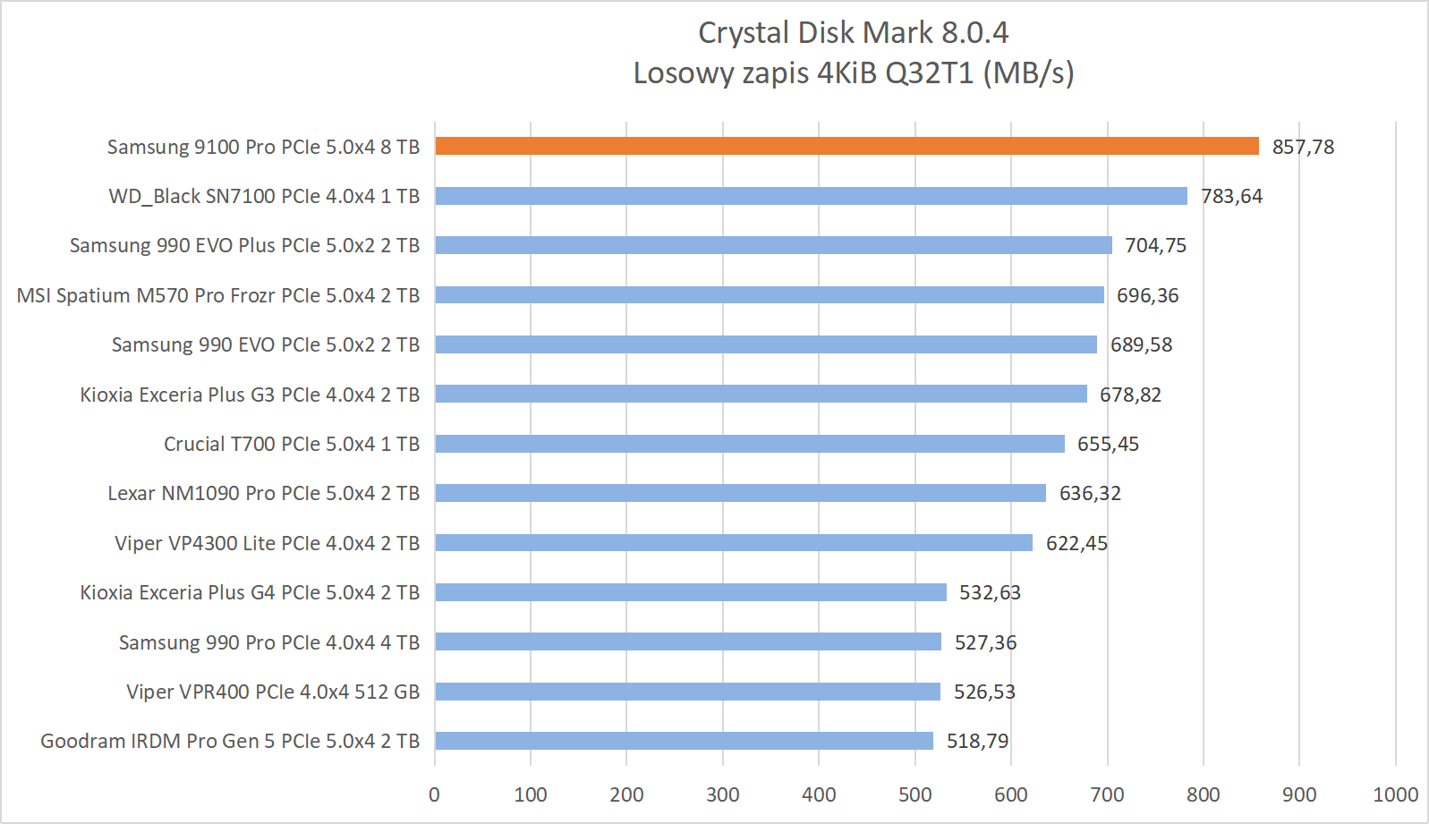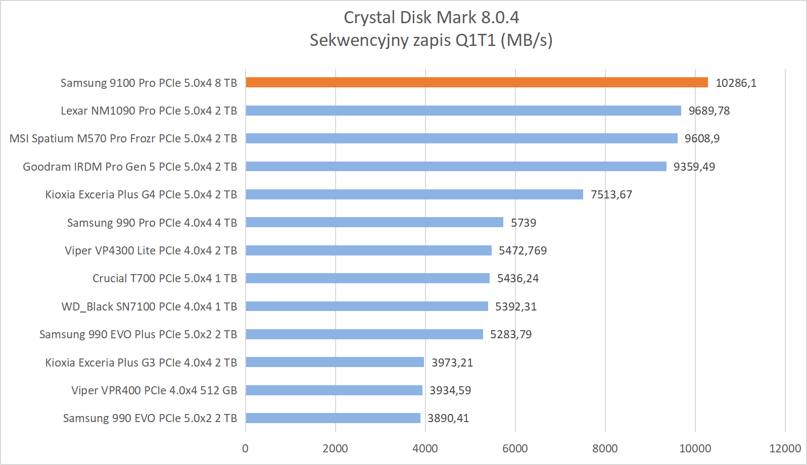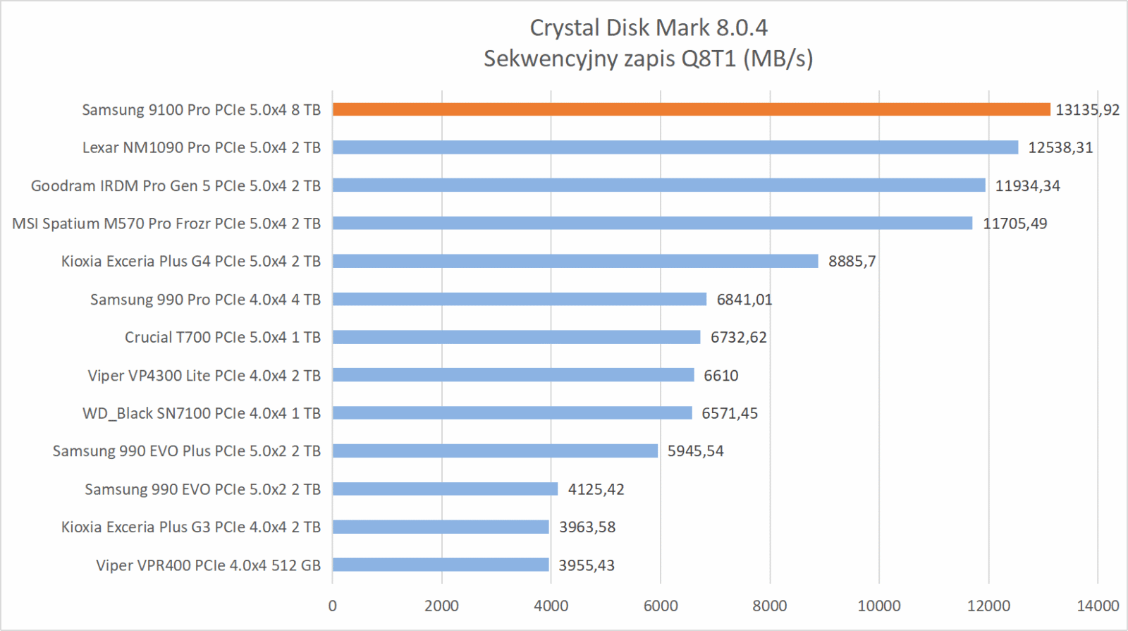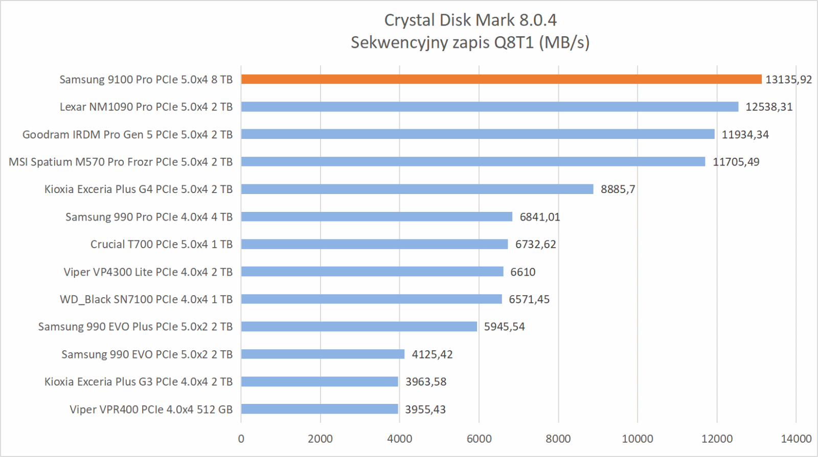 Test dysku Samsung 9100 Pro 8 TB – podsumowanie