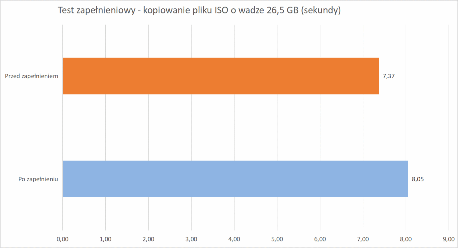 Poniżej możecie podejrzeć porównanie wykresów z procesu kopiowania, które przedstawiają zmieniający się transfer w ciągu całego procesu kopiowania plików zarówno po zapełnieniu, jak i przed zapełnieniem.