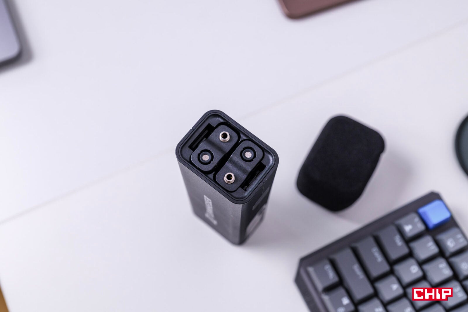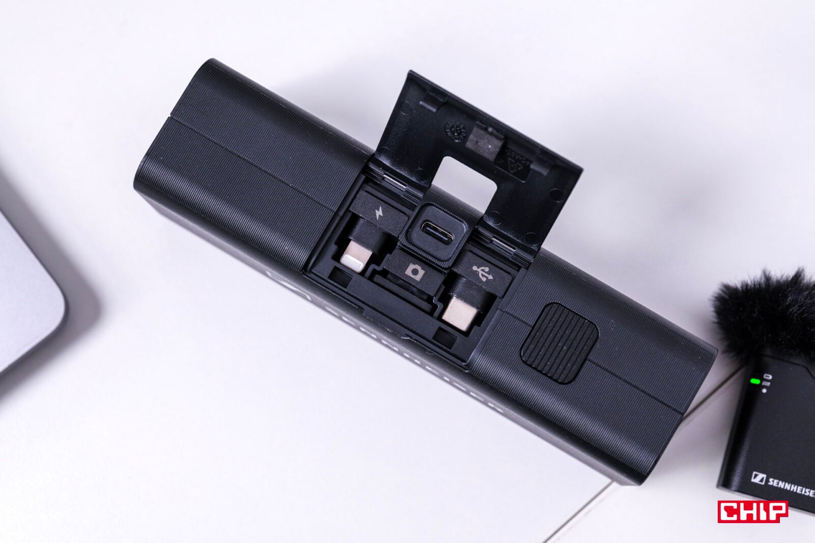Kiedy nie chcemy korzystać z dużego mikrofonu, to cała konstrukcja służy za powerbank do dwóch mniejszych mikrofonów. Nadajniki mają montowanie na klips, co trochę blado wypada przy mikrofonach montowanych magnetycznie — te są po prostu zdecydowanie wygodniejsze i łatwiej można je przytwierdzić do dowolnego ubrania. Sennheiser o tym jednak również pomyślał, gdyż w głównej konstrukcji są ukryte także dwa magnesy, które przylepiają się do klipsów — więc mamy pełną dowolność w kwestii tego, jak chcemy zamontować krawatówki do nagrywania materiału. To dosłownie rozwiązanie typu all-in-one, które eliminuje konieczność podpinania dodatkowych urządzeń czy noszenia osobnych modułów.