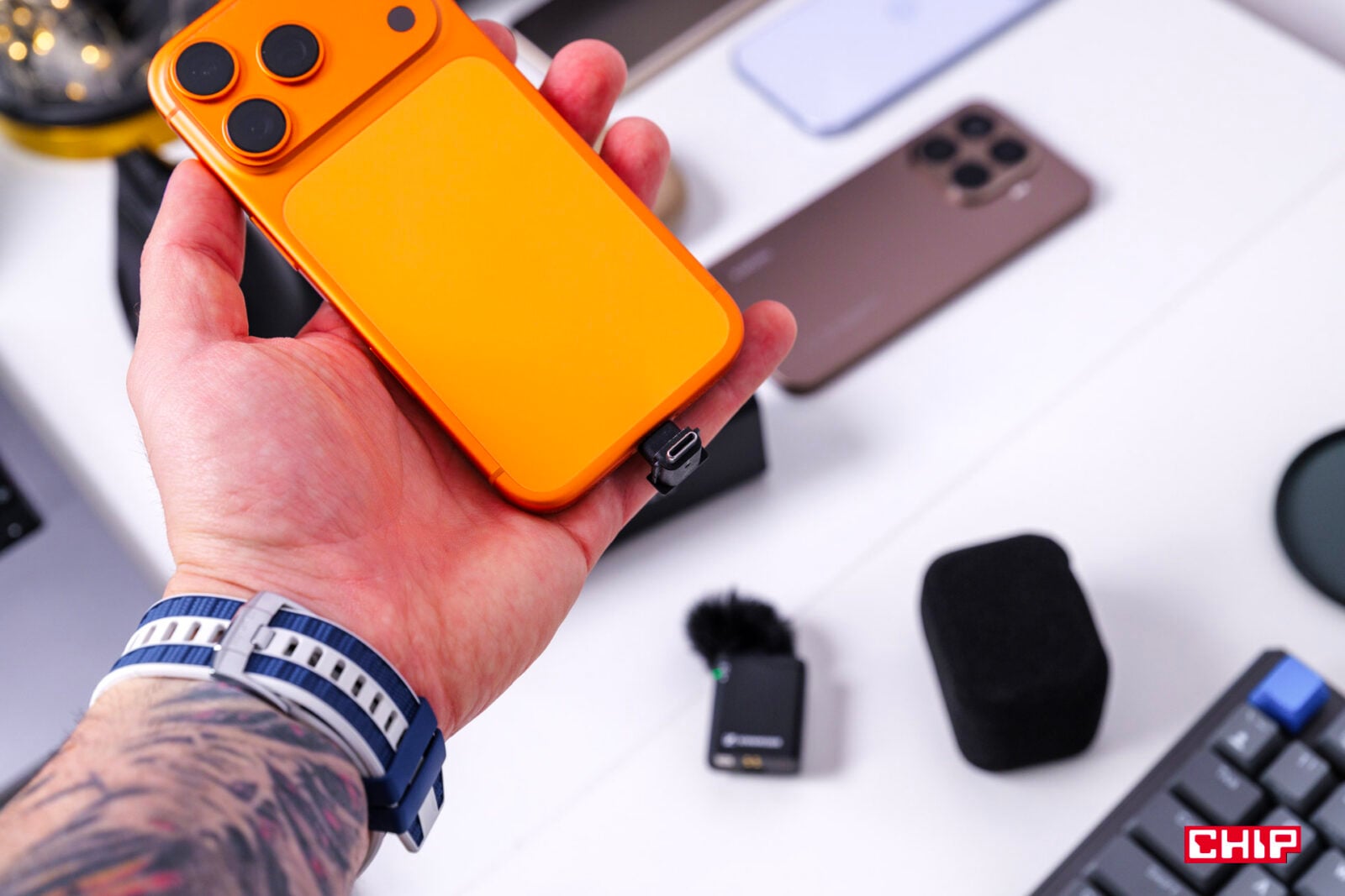Najważniejszym elementem zestawu jest pokaźny mikrofon wyglądający na typowy reporterski model. I faktycznie możemy z Profile Wireless korzystać we właśnie taki, dość klasyczny (a może i nawet oldschoolowy) sposób, montując na jego czubku dużą gąbkę dołączoną do zestawu. W rzeczywistości to jednak znacznie więcej niż duży i średnio poręczny mikrofon. Wewnątrz obudowy znajdziemy bowiem odbiornik z dotykowym ekranem OLED, akumulator pełniący rolę ładowarki dla całego systemu, a także dwa nadajniki krawatowe, które wysuwają się z konstrukcji po naciśnięciu odpowiednich przycisków. Sama obudowa w sprytny sposób kryje także złącza USB‑C i Lightning do bezpośredniego podłączenia do odbiornika oraz smartfona, oraz element umożliwiający bezpieczne zamocowanie odbiornika na kamerze. Dzięki temu całość działa jako kompletne centrum nagraniowe, które eliminuje konieczność wożenia dodatkowych modułów.