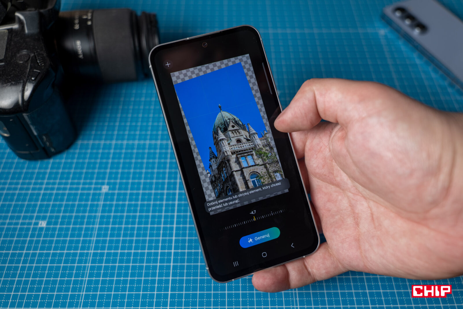 Samsung pozwala też na zabawę z treścią zdjęcia, jeśli ta nie dotyczy ludzkich twarzy. Możemy zatem dorysować na fotografii rzecz lub obiekt, a sztuczna inteligencja stworzy element graficzny, który stanie się częścią zdjęcia. W niektórych przypadkach prezentuje się on zaskakująco realistycznie. Do tego ludzi w kadrze możemy przesuwać. Galaxy AI pozwala też na usuwanie odbić ze zdjęć i robi to w sposób w znacznej mierze satysfakcjonujący. Podobnie mogę wypowiedzieć się o funkcji poprawiania jakości zdjęć.