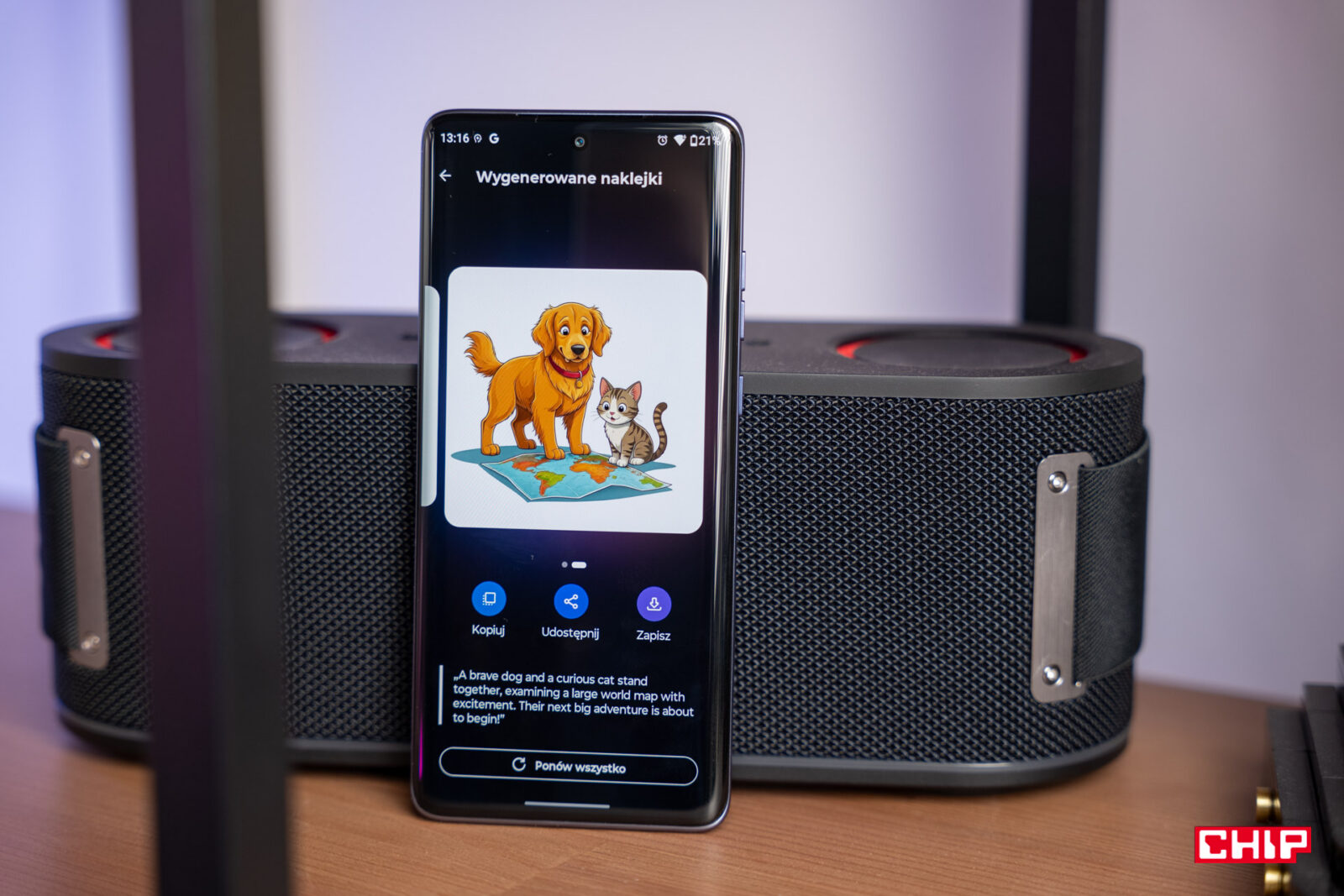 Ciekawostką jest także Ruch AI, czyli opcja dodania ruchu do nieruchomych zdjęć, co pozwala tworzyć z nich krótkie filmiki. Otrzymujemy w ten sposób opcje ożywienia zdjęcia jako filmu poklatkowego lub dodanie naturalnego ruchu na kilka sekund. W ten sposób tafla wody albo chmury w kadrze mogą przepływać tak, jak w rzeczywistości. Inną opcją jest animowany ruch, co może w zabawny sposób ożywić zdjęcia chociażby z naszym czworonogiem. Po wygenerowaniu grafik i animacji łatwo zapiszemy je lub udostępnimy.