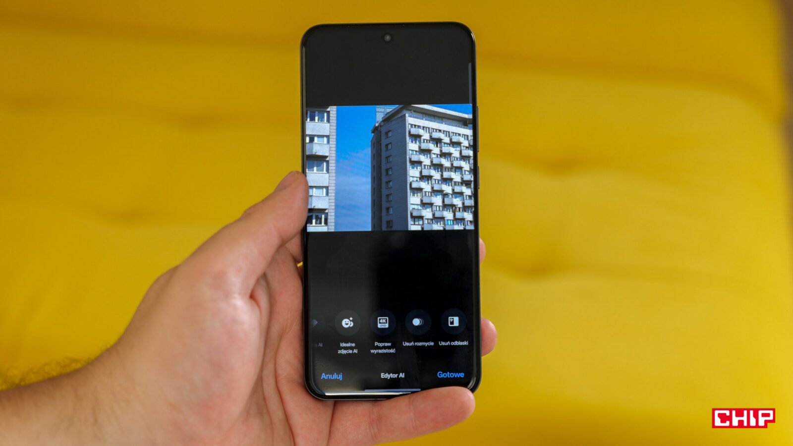 Na co dzień bardziej przydane będzie usuwanie rozmycia. Gdy fotografia nie ma idealnej ostrości, czy to z naszej, czy czyjejś winy, możemy uratować jej wygląd czyniąc ją milszą dla oka przez redukcję rozmycia. Nie jest to równoznaczne ze znalezieniem nowego punktu ostrości, ale wystarczy do uczynienia lekko niewyraźnych zdjęć przyjemniejszymi w odbiorze. Podobnie rzecz ma się z usuwaniem odblasków. Jeśli fotografujemy zza szkła, na zdjęciach może pojawić się nieprzyjemny efekt. Funkcja w edytorze AI OPPO nie zniweluje go całkowicie, za to może go częściowo zneutralizować.
