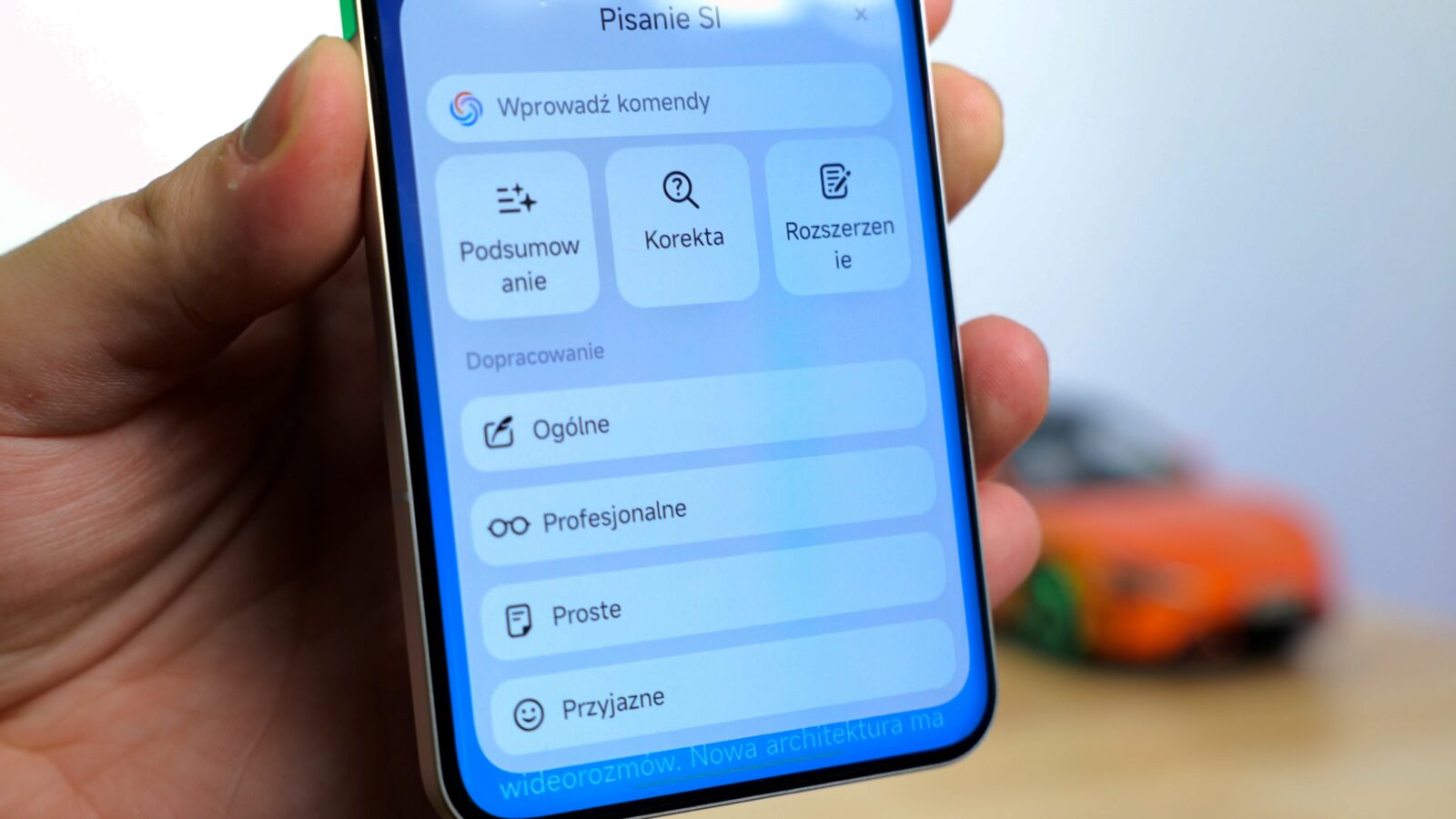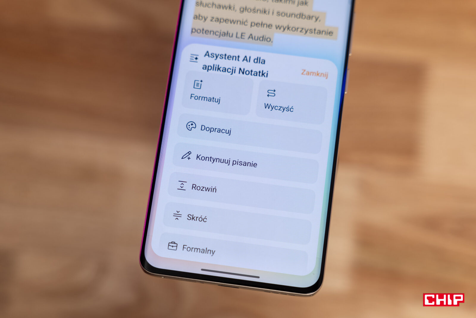Notatnik oferuje dostęp do wielu funkcji zawartych w pakiecie “Pisanie SI”. Podsumowanie notatek to oczywistość, ale nie tak częsta jest korekta pod kątem błędów, nie tylko ortograficznych, ale i gramatycznych. AI nie jest jeszcze idealne i warto czuwać nad przecinkami, ale przy większości błędów smartfon wykrywał je i naprawiał bez pudła. Tekst możemy także rozszerzyć i choć wchodzimy tu na obszar halucynacji AI, to często rozszerzenia są ciekawe. Rzadko kiedy jednak opierają się na nowych faktach.