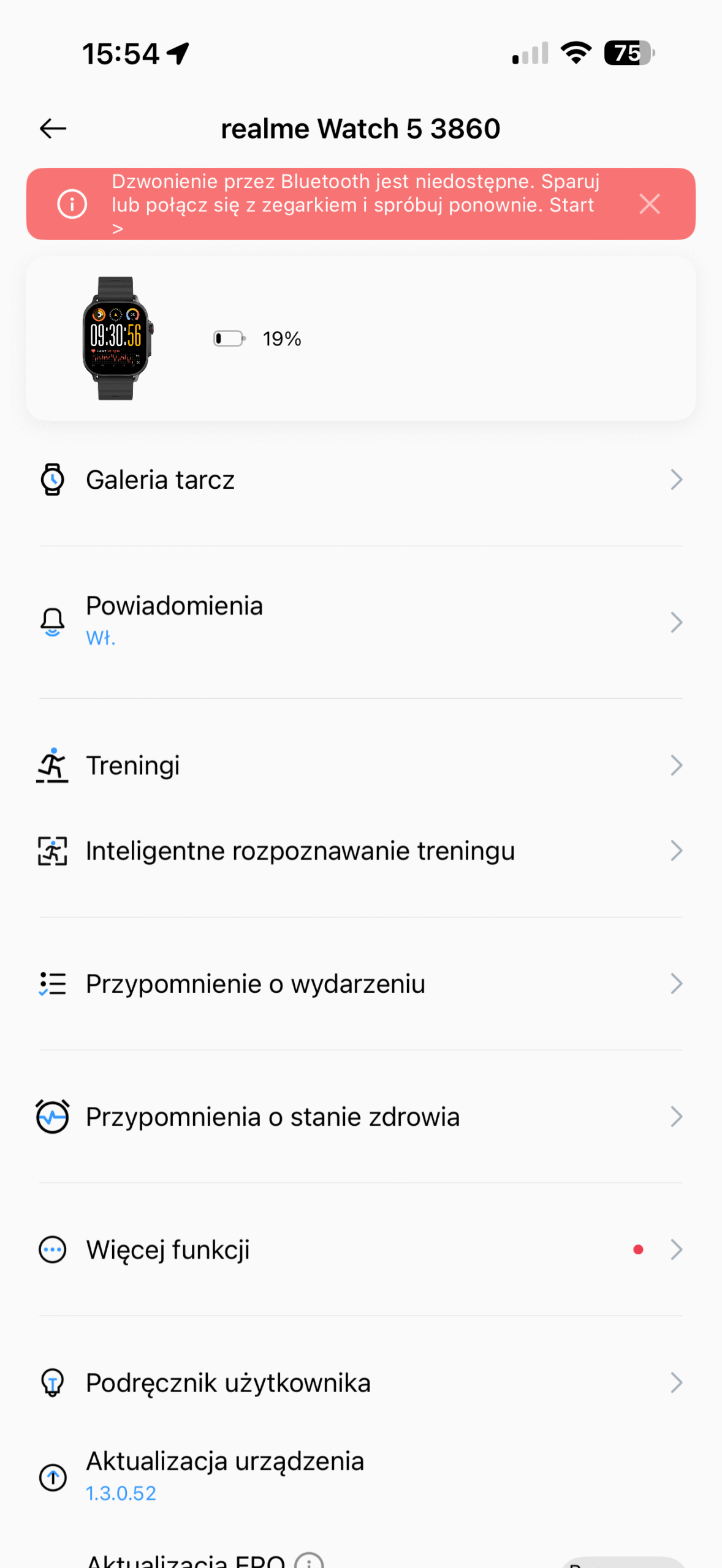 W codziennym użytkowaniu system działa stabilnie, co nie znaczy, że smartwatch jako taki nie sprawia problemów – choć jedną z funkcji Realme Watch 5 jest działanie jako zestaw głośnomówiący dla smartfonu, mimo wielokrotnych prób łączenia zegarka z iPhone’m aplikacja wciąż sygnalizuje, że funkcja ta jest niedostępna i wymaga parowania. Nie to nie, obejdzie się.
