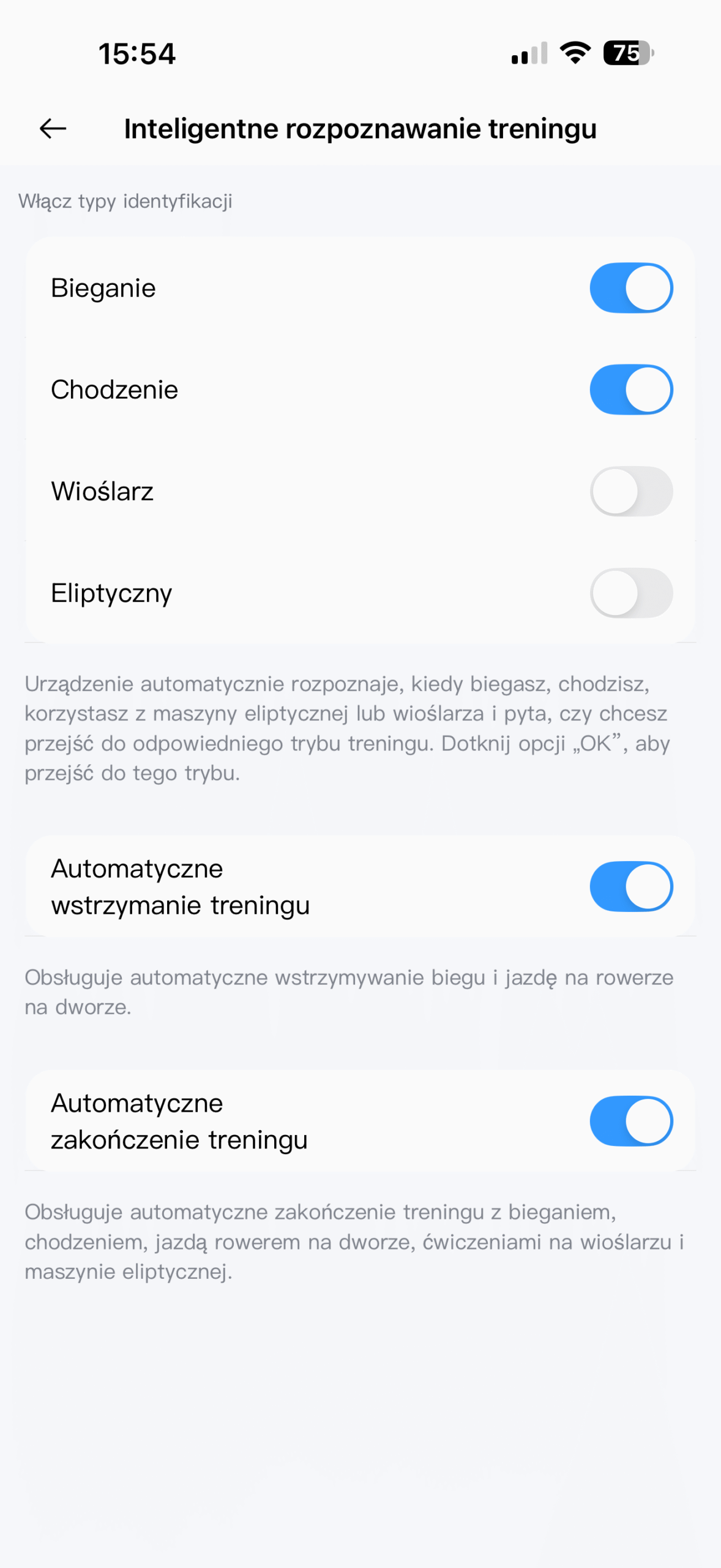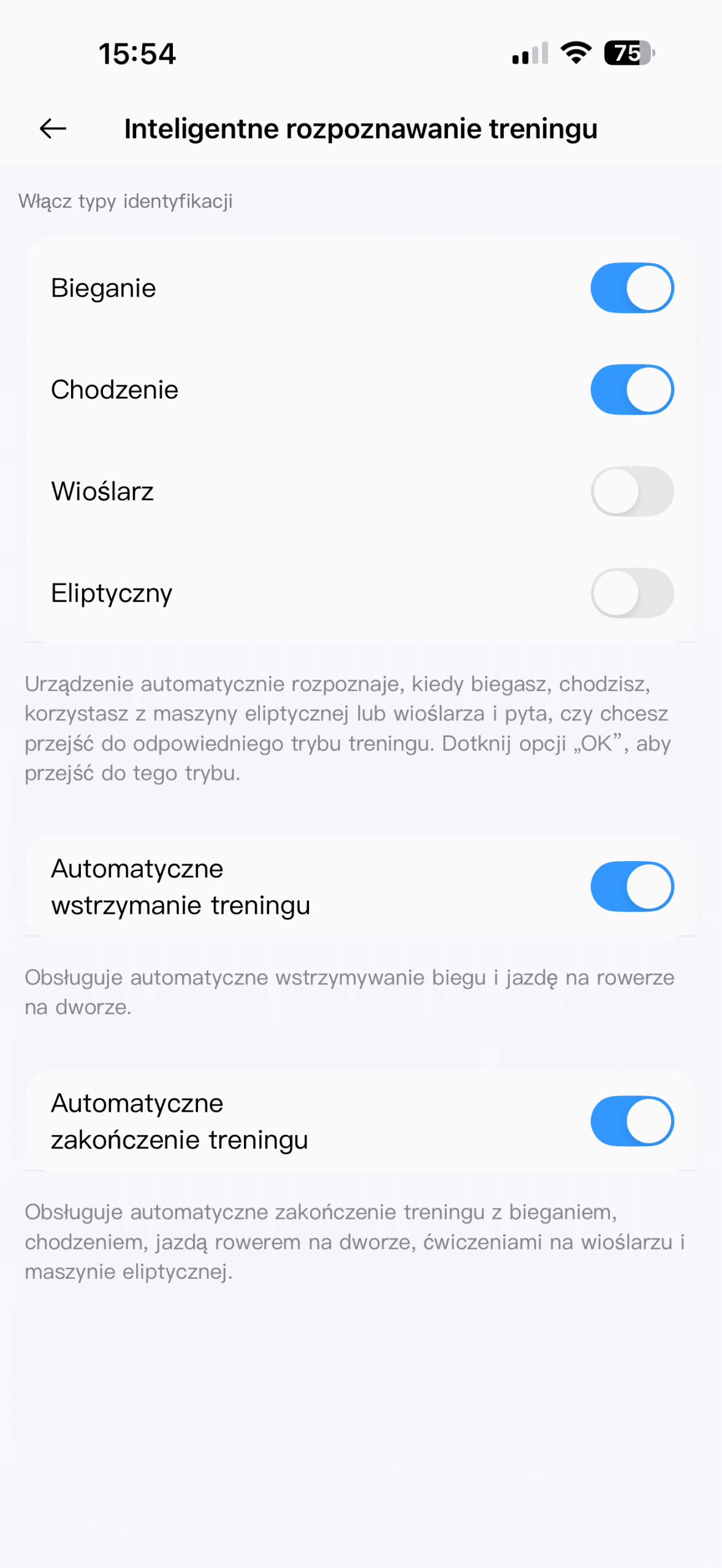 Producent chwali się obsługą aż 108 trybów sportowych – dużo, choć trzeba pamiętać, że w większości rejestrowane są te same parametry: czas, tętno i szacunkową liczbę spalonych kalorii, a część bytów na liście znalazła się trochę na siłę. Wyniki treningów (wraz z zapisanymi śladami z lokalizatora) można podejrzeć w aplikacji, niestety tu ujawnia się istotna wada – nic z nimi nie można więcej zrobić, nie da się ich wysłać do aplikacji Zdrowie czy do popularnej Stravy.