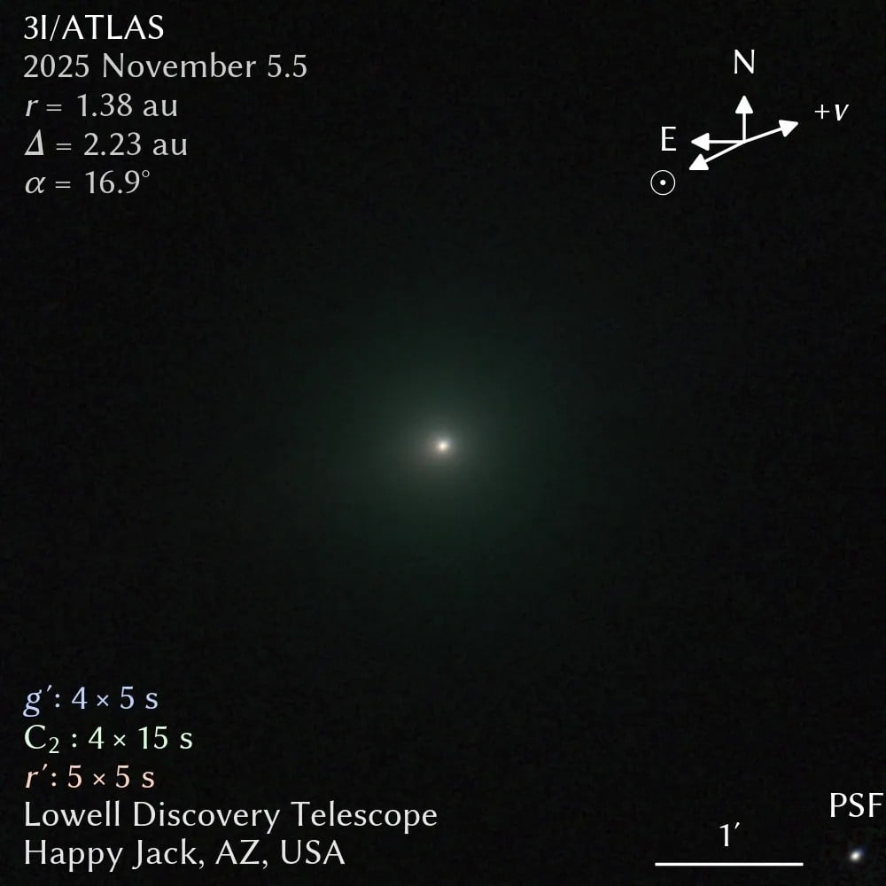 Badania spektroskopowe pokazują, iż 3l/ATLAS emituje więcej światła w krótszych falach niż nasza gwiazda. Najintensywniej świeci w zakresie niebiesko-zielonym, co potwierdza gwałtowne reakcje chemiczne w jej atmosferze. Zhang wraz z zespołem opublikował wstępne wyniki na serwerze arXiv, dokumentując nagłe pojaśnienie obiektu przed zbliżeniem do Słońca.