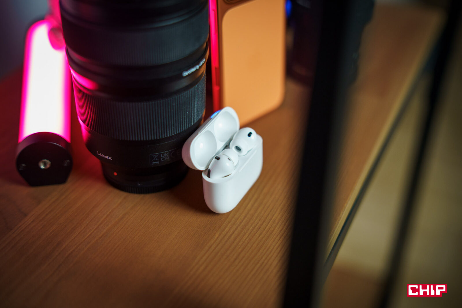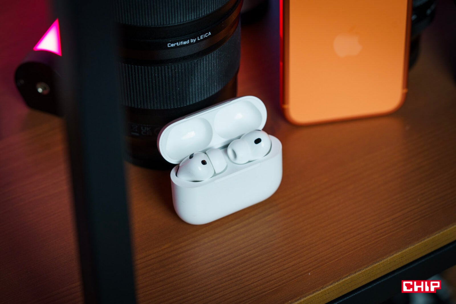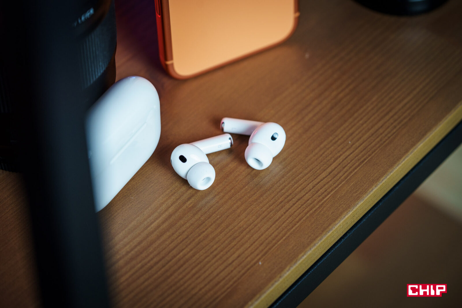 Sam materiał końcówek też nie jest przypadkowy. Apple stosuje tu miękki, lekko piankowy wkład, który dopasowuje się do kanału i poprawia izolację pasywną. To ma znaczenie nie tylko dla komfortu, ale i dla działania ANC — im lepiej odetniemy dźwięk mechanicznie, tym mniej elektronika musi kombinować. Całość jest przy tym odporna na wodę i pył w klasie IP57, co obejmuje zarówno słuchawki, jak i etui. W praktyce oznacza to, że trening na dworze, bieganie w mżawce czy pot absolutnie nowym AirPods Pro nie zaszkodzą. Chociaż nadal nie są to słuchawki na basen.