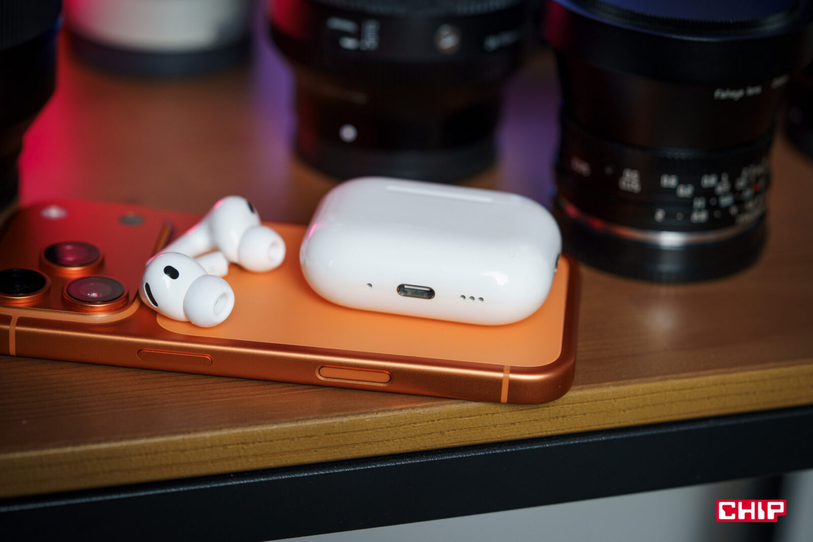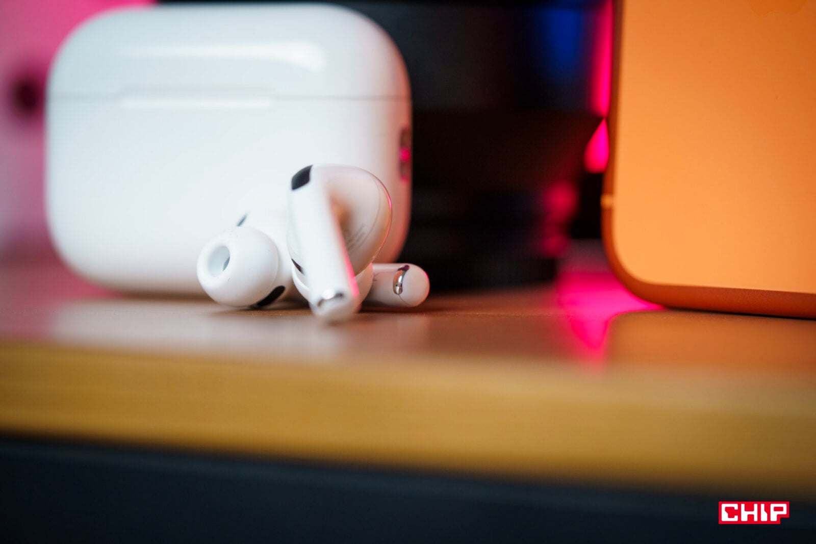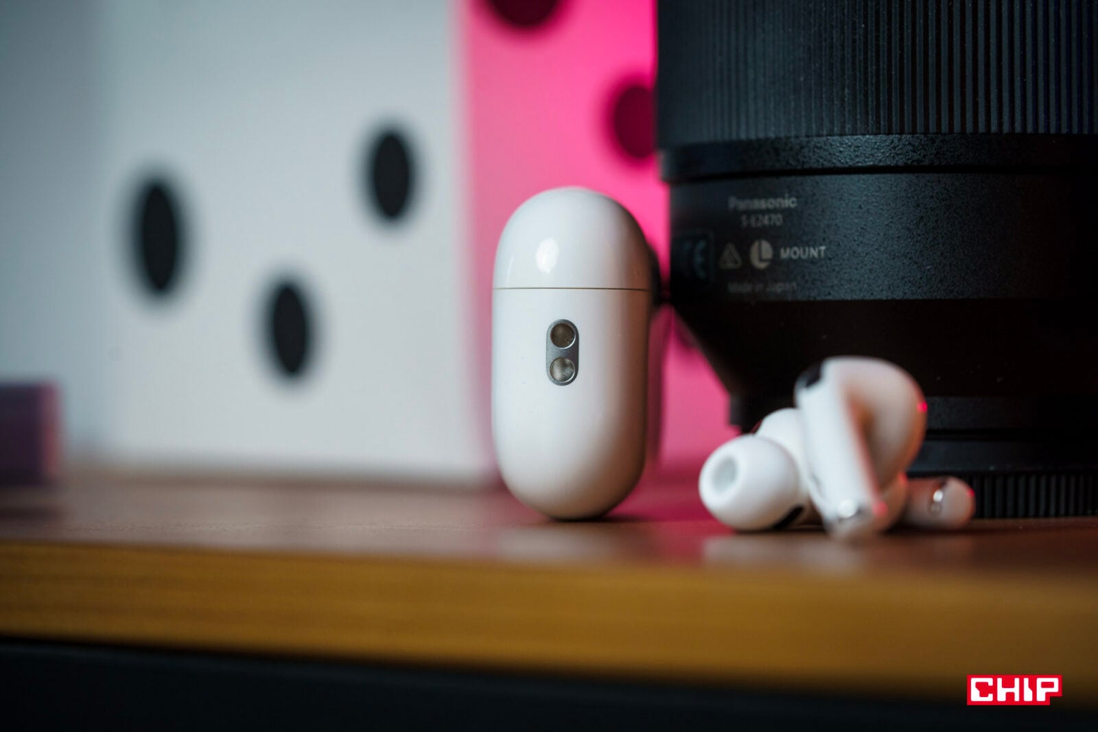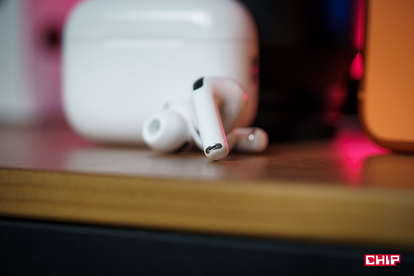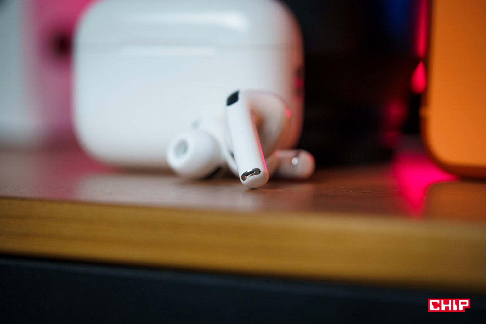 Jedyne, co mnie negatywnie zaskoczyło, to fakt, że w dolnej części etui — na jednej linii z USB-C i głośnikami — to zaczęło się delikatnie przebarwiać na żółto. W pierwszej generacji Pro, nosząc case bez żadnego dodatkowego etui przez ponad 5 lat, w ogóle nie miałem takiej sytuacji. Te słuchawki nosiłem wyłącznie w kieszeni spodni, bluzy, kurtki lub w plecaku, a poza tym leżały na biurku. Nie miały więc od czego się przebarwić; i nie jest to bardzo widoczne, ale jednak dość zastanawiające.