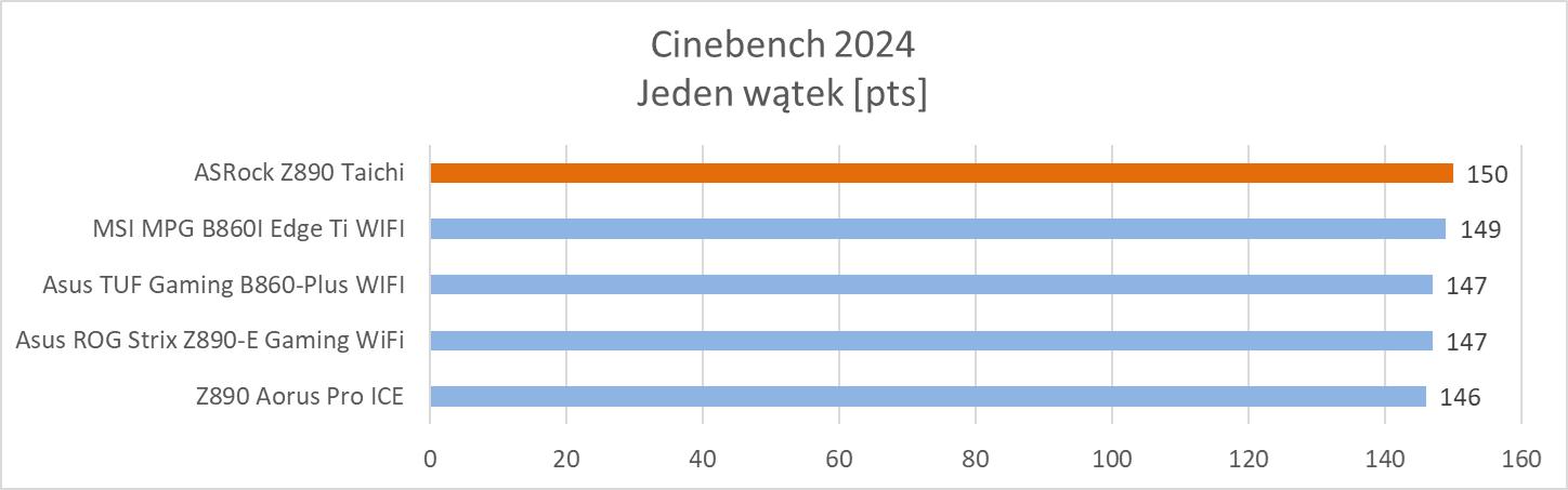 Cinebench to popularny benchmark bazujący na Maxon Cinema 4D. Pozwala on na dobrą ocenę wydajności procesorów i często pojawia się w przeciekach. W testach wykorzystałem wersję 2024 oraz testy jedno i wielowątkowe.