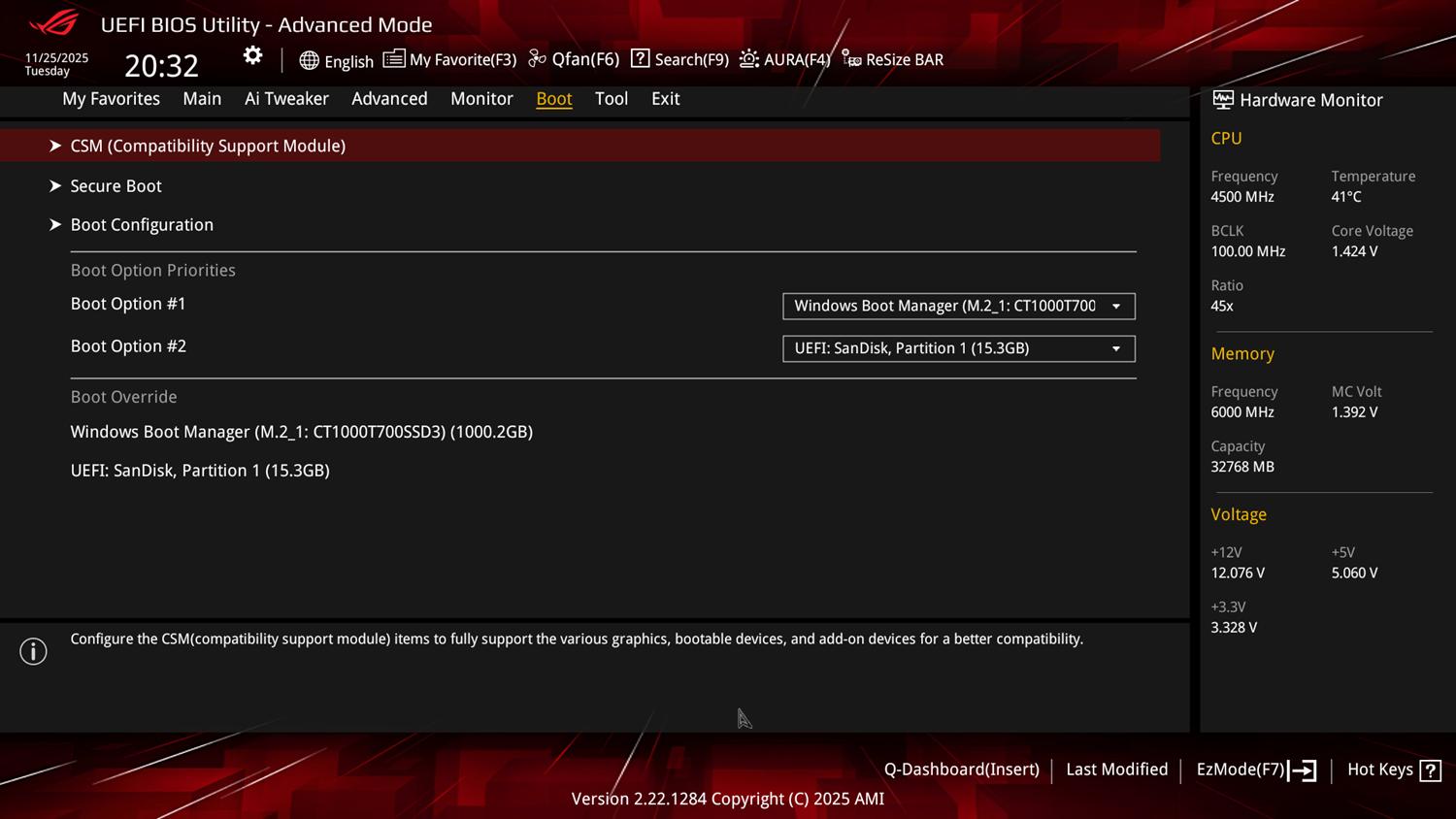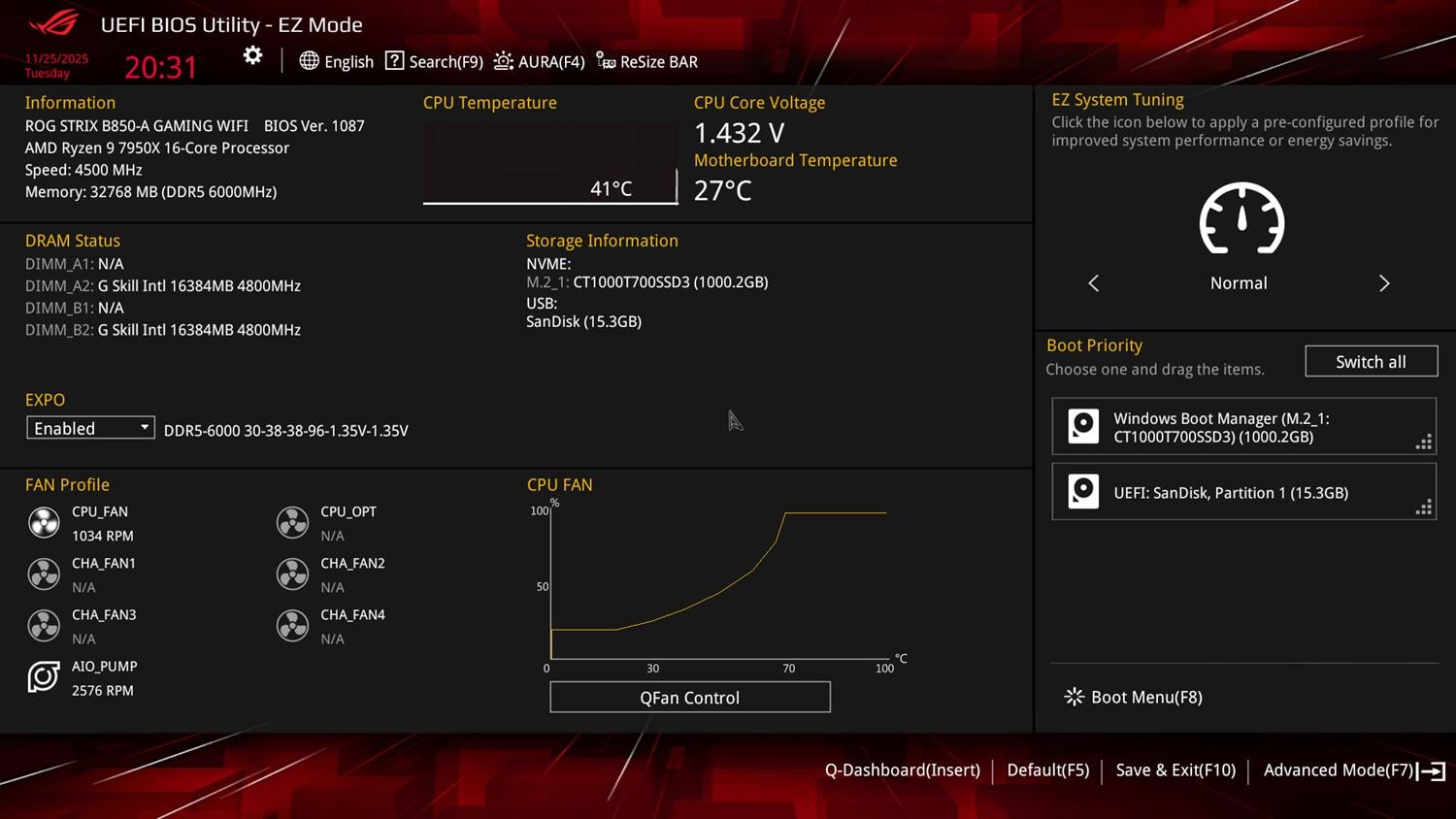 Testy wykonałem przy domyślnych ustawieniach BIOSu. Włączyłem tylko profil EXPO pamięci, który zadziałał bez problemów.