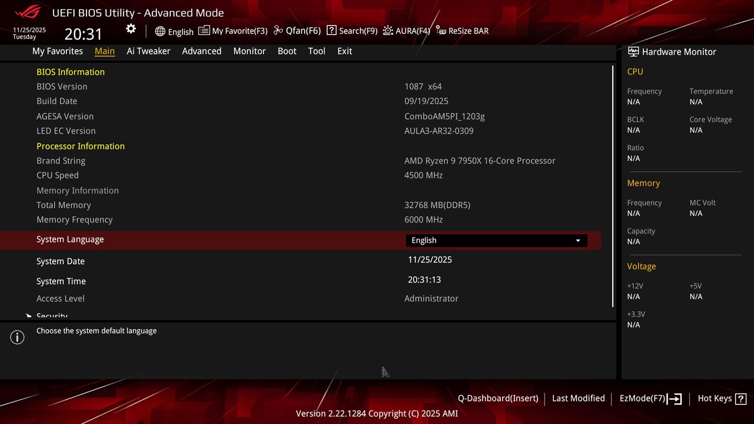 BIOS Asus ROG Strix B850-A Gaming WiFi