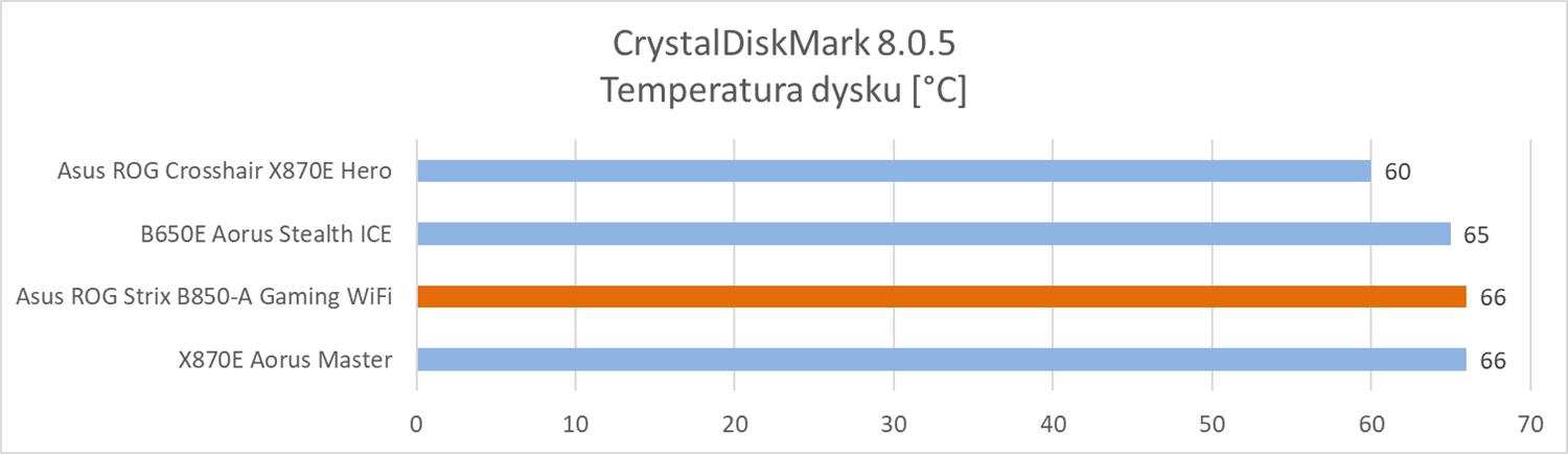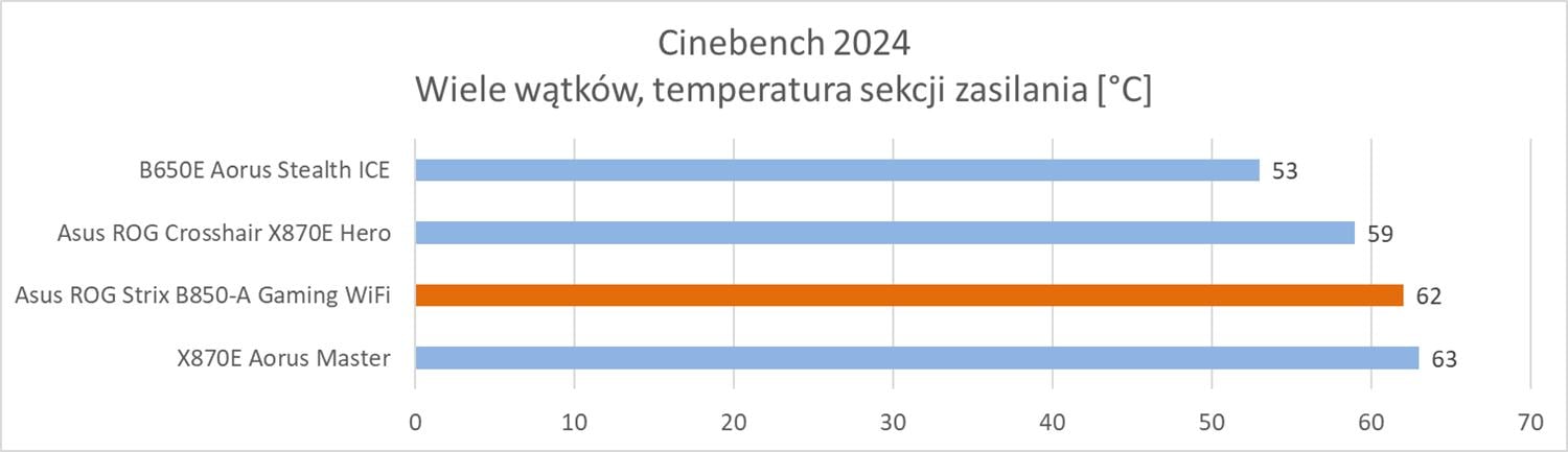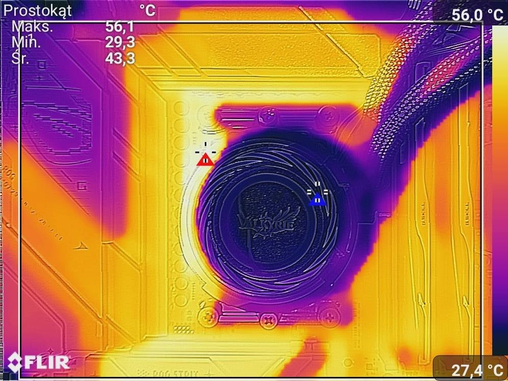 Temperatura sekcji jest całkowicie w porządku. Jest ona niska i mamy mnóstwo przestrzeni na podkręcanie procesora. Widać więc, że sekcja zasilania bez problemów poradzi sobie z każdym procesorem na AM5.