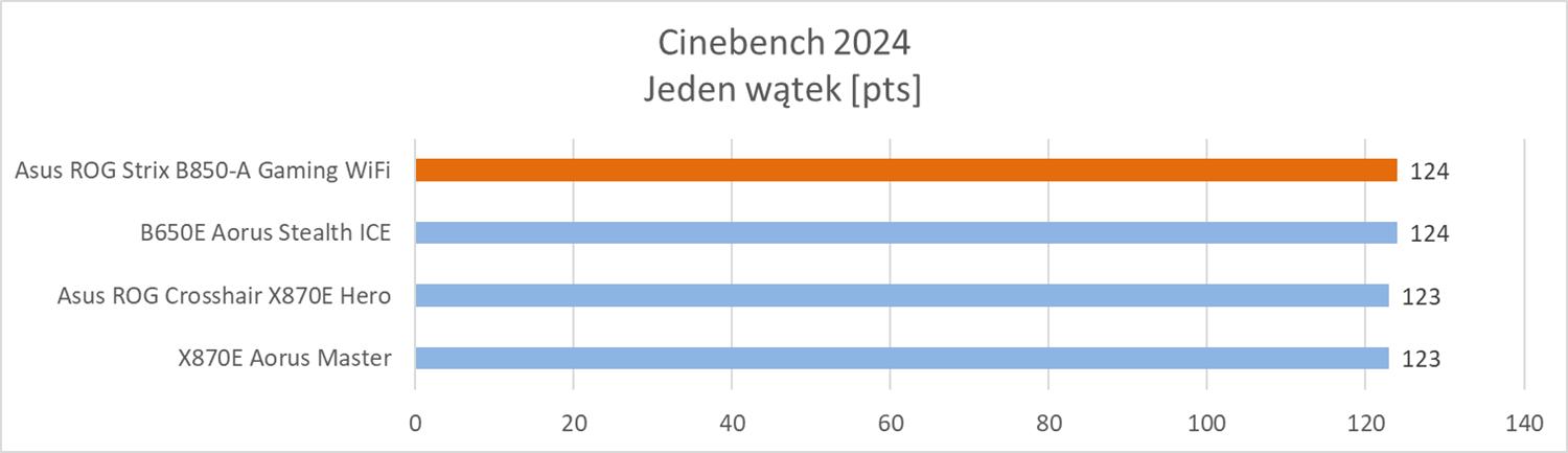Cinebench to popularny benchmark bazujący na Maxon Cinema 4D. Pozwala on na dobrą ocenę wydajności procesorów i często pojawia się w przeciekach. W testach wykorzystałem wersję 2024 oraz testy jedno i wielowątkowe.