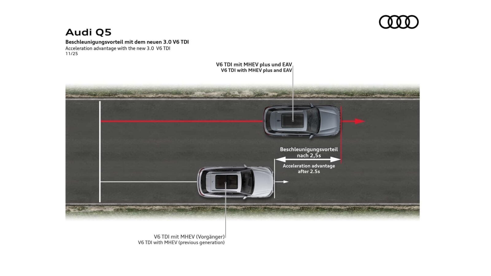 W porównaniu z poprzednim silnikiem TDI nowa jednostka osiąga maksymalne ciśnienie doładowania na poziomie 3,6 bara prawie o sekundę szybciej. Koło kompresora obraca się również o około 40 procent szybciej, osiągając 90000 obr./min w zaledwie 250 milisekund, a to bezpośrednio przekłada się na reakcję samochody przy starcie. Dzięki temu pojazd pokonuje “o ponad długość samochodu więcej” w ciągu pierwszych dwóch i pół sekundy. Audi ma jednak jeszcze jeden nowy (ekologiczny) as w rękawie.