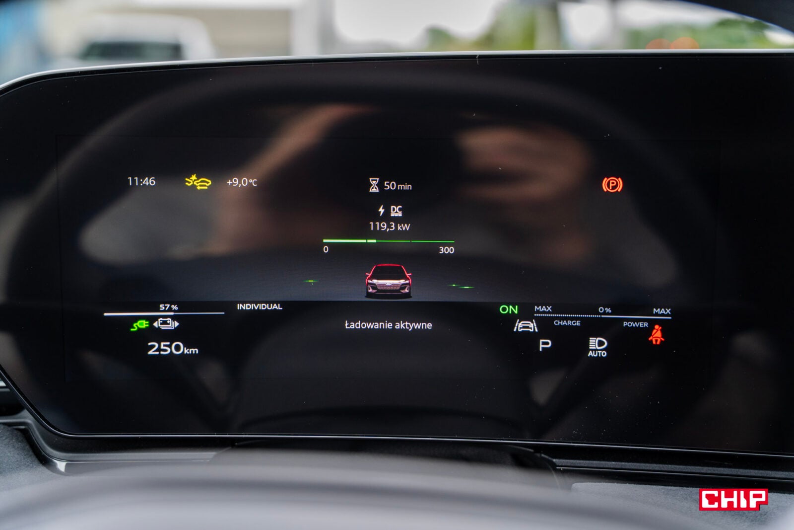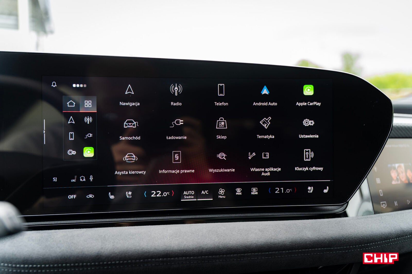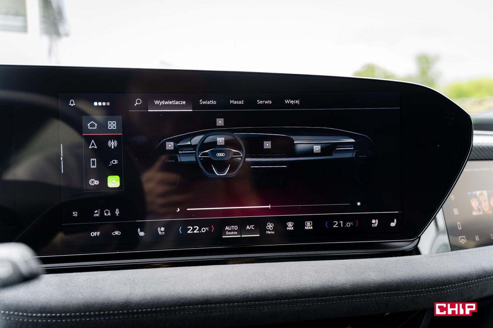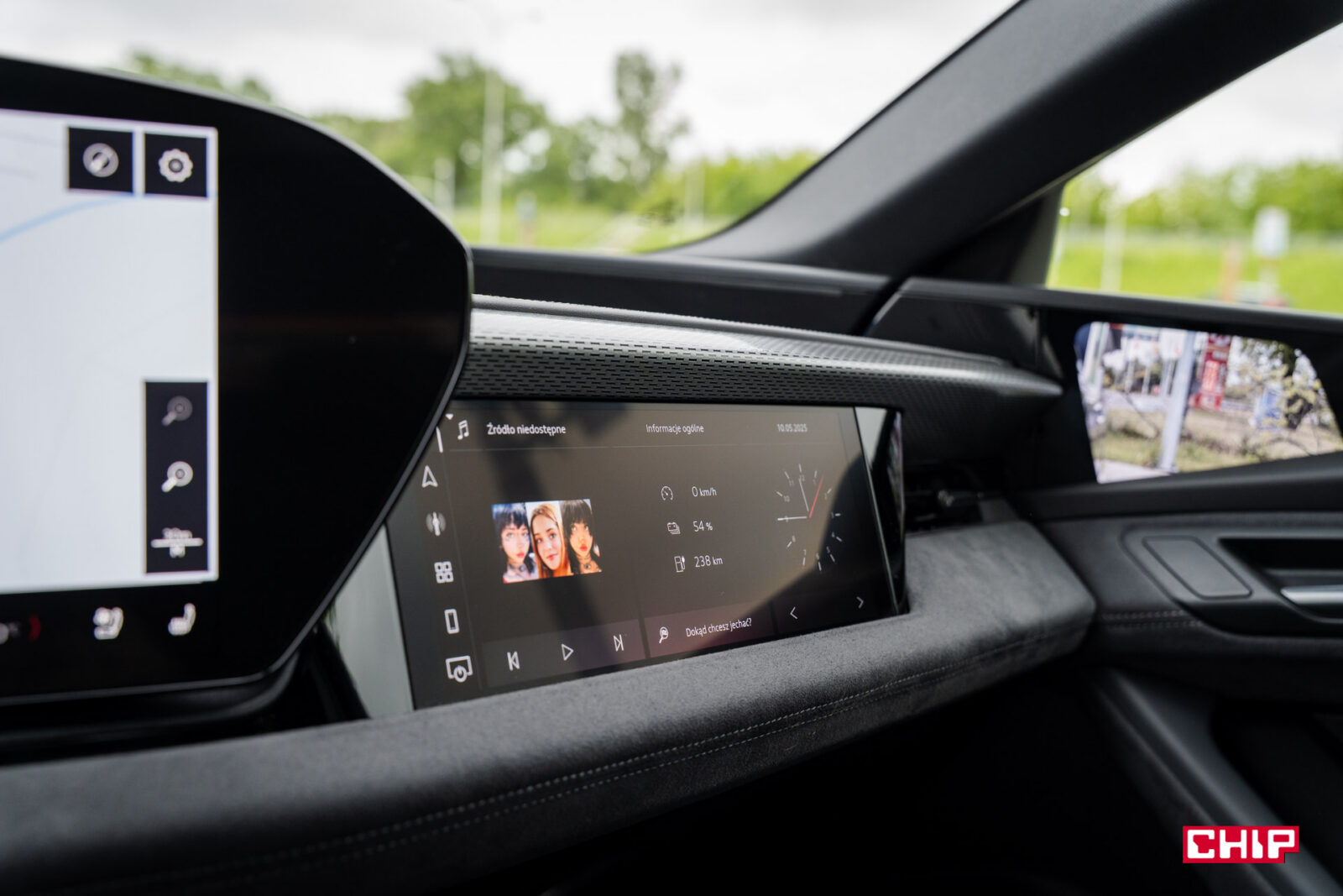 Ceny zaczynają się od 482 100 zł, więc nie ma, że tanio, ale za te pieniądze dostaniecie porządne wyposażenie. Wybaczcie, gdybym miała wymienić wszystko, poszłoby pewnie z 5 000 znaków, więc tego nie zrobię, ale zahaczę o kilka istotnych elementów. 3-strefowa klimatyzacja, klimatyzacja postojowa, podgrzewane przednie siedzenia (fotele sportowe z elektryczną regulacją), elektryczna klapa bagażnika, Audi virtual cockpit plus (11,9-calowy wyświetlacz OLED), system kamer 360°, asystent parkowania plus, system rozpoznawania znaków drogowych współpracujący z kamerą, adaptacyjny asystent prędkości, Audi parking system plus z sygnalizacją odległości, system ostrzegający przed opuszczeniem pasa ruchu…. Nie, to nie wszystko, ale gdybym miała wymieniać, dostałabym zadyszki. Porządna cena, porządne wyposażenie, to chyba oczywiste na tym etapie.