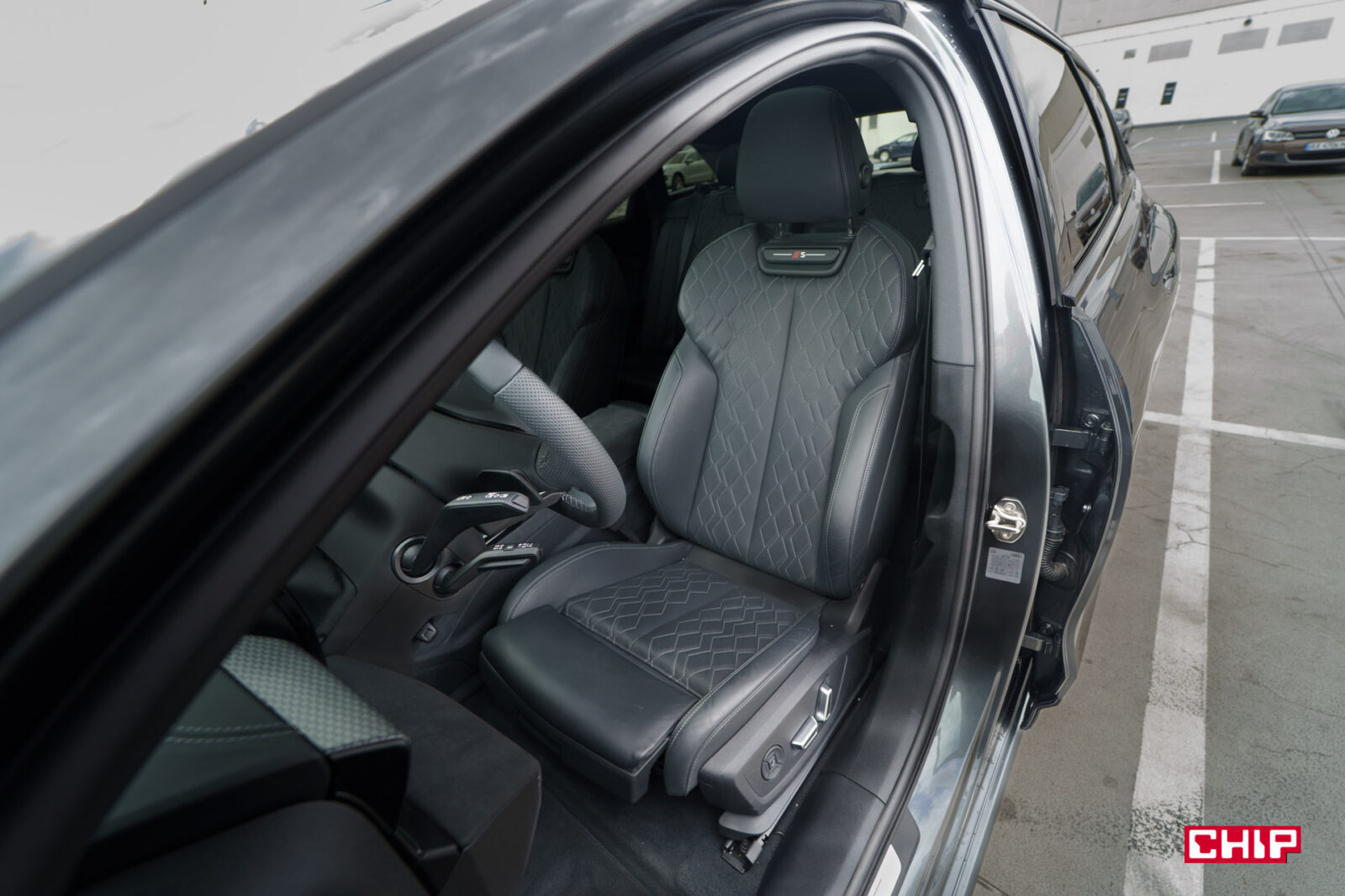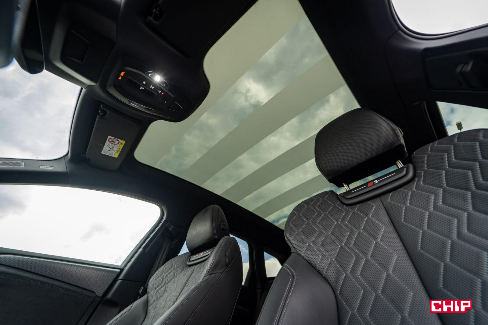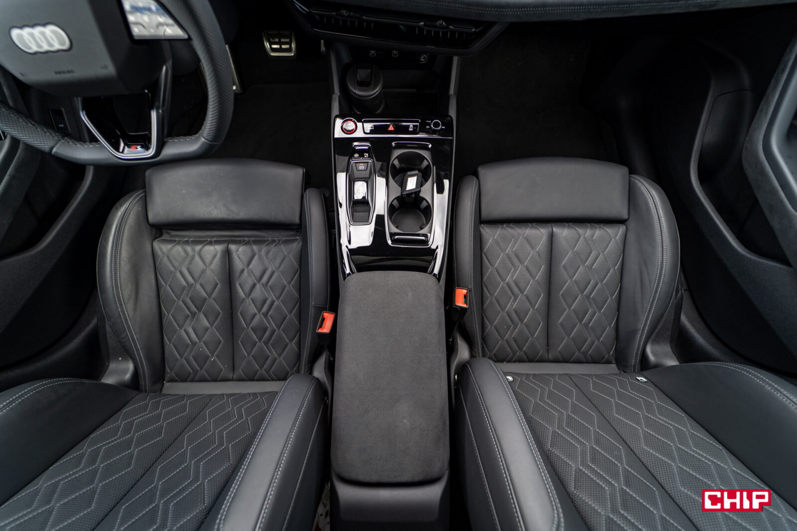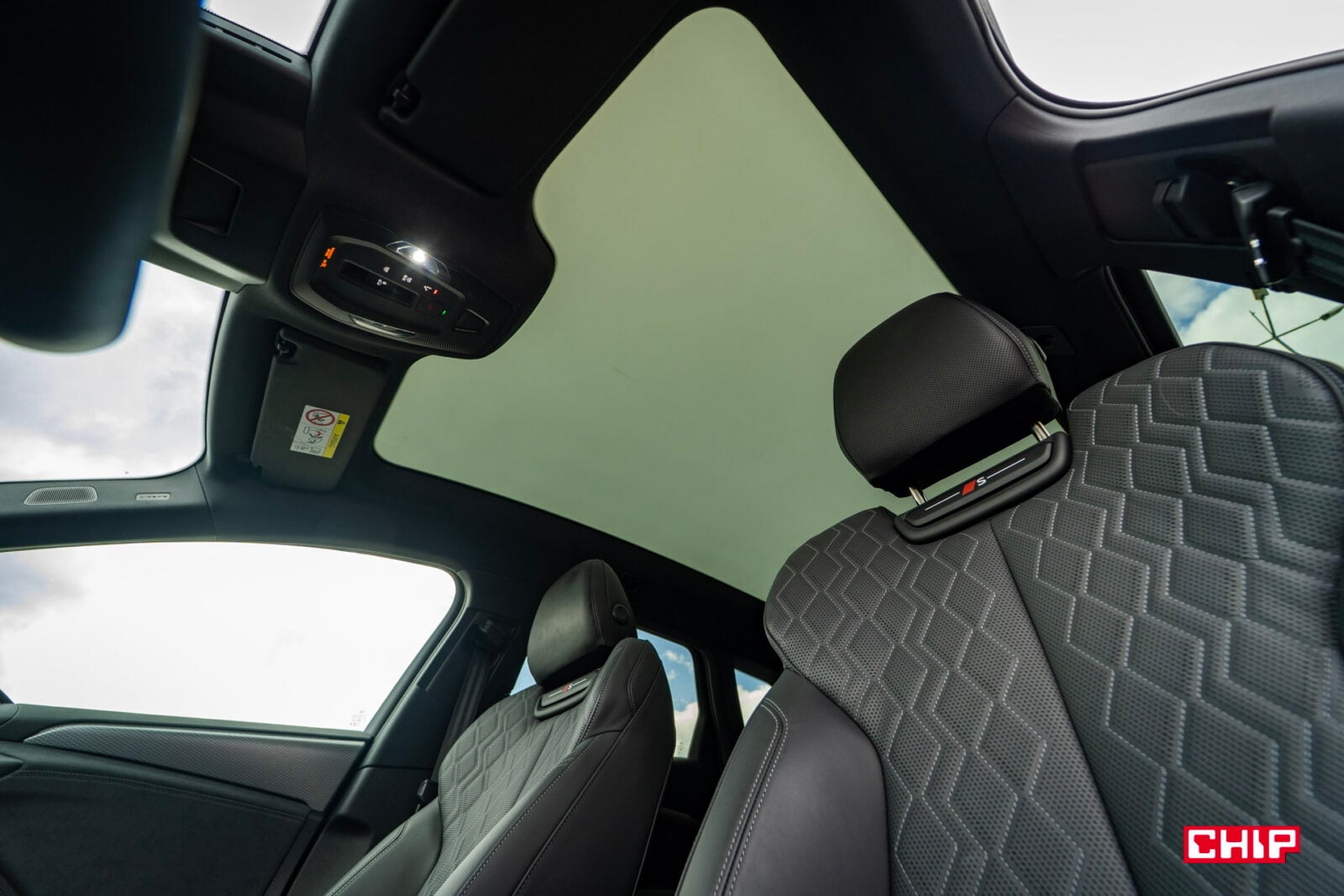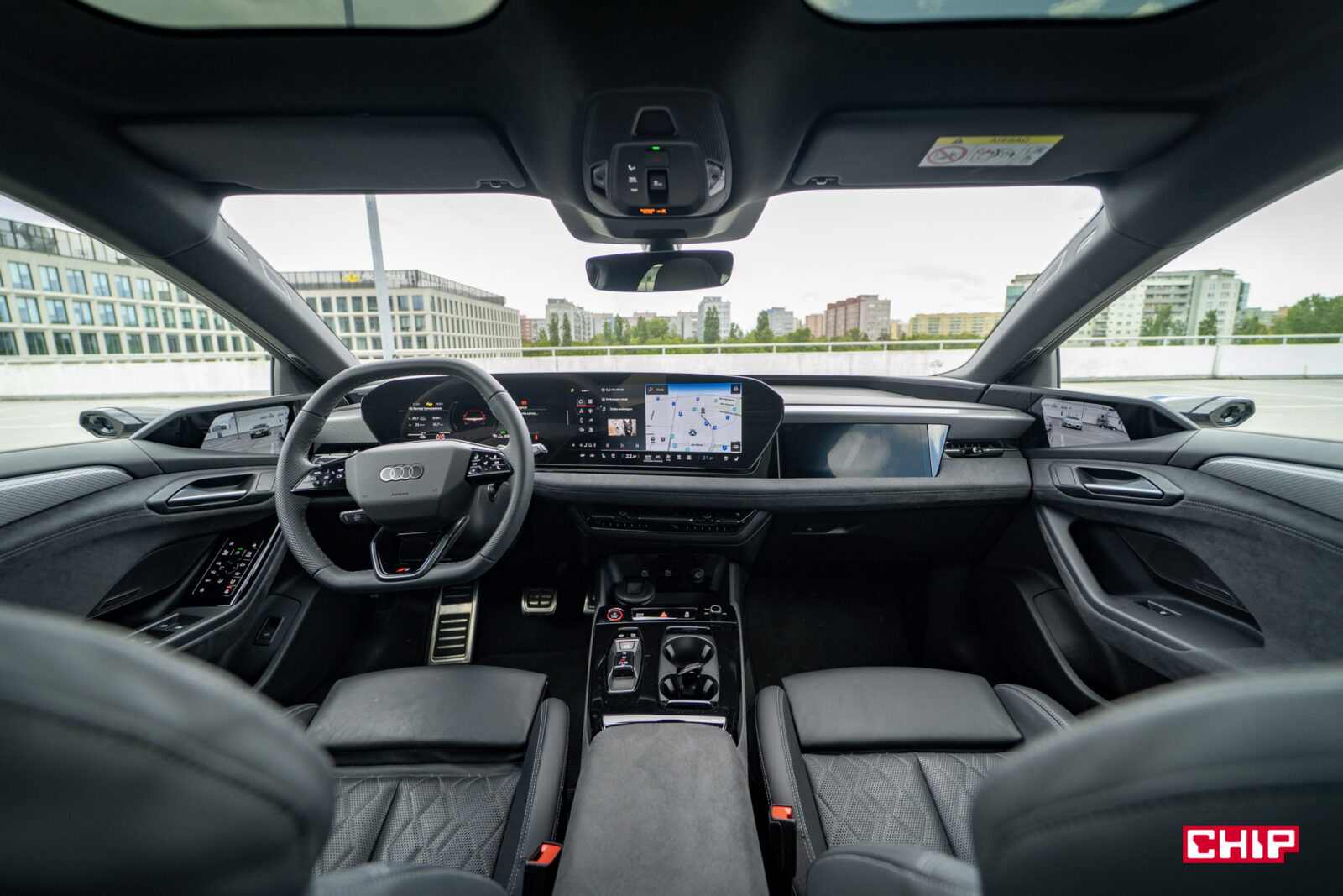 Ceny zaczynają się od 482 100 zł, więc nie ma, że tanio, ale za te pieniądze dostaniecie porządne wyposażenie. Wybaczcie, gdybym miała wymienić wszystko, poszłoby pewnie z 5 000 znaków, więc tego nie zrobię, ale zahaczę o kilka istotnych elementów. 3-strefowa klimatyzacja, klimatyzacja postojowa, podgrzewane przednie siedzenia (fotele sportowe z elektryczną regulacją), elektryczna klapa bagażnika, Audi virtual cockpit plus (11,9-calowy wyświetlacz OLED), system kamer 360°, asystent parkowania plus, system rozpoznawania znaków drogowych współpracujący z kamerą, adaptacyjny asystent prędkości, Audi parking system plus z sygnalizacją odległości, system ostrzegający przed opuszczeniem pasa ruchu…. Nie, to nie wszystko, ale gdybym miała wymieniać, dostałabym zadyszki. Porządna cena, porządne wyposażenie, to chyba oczywiste na tym etapie.