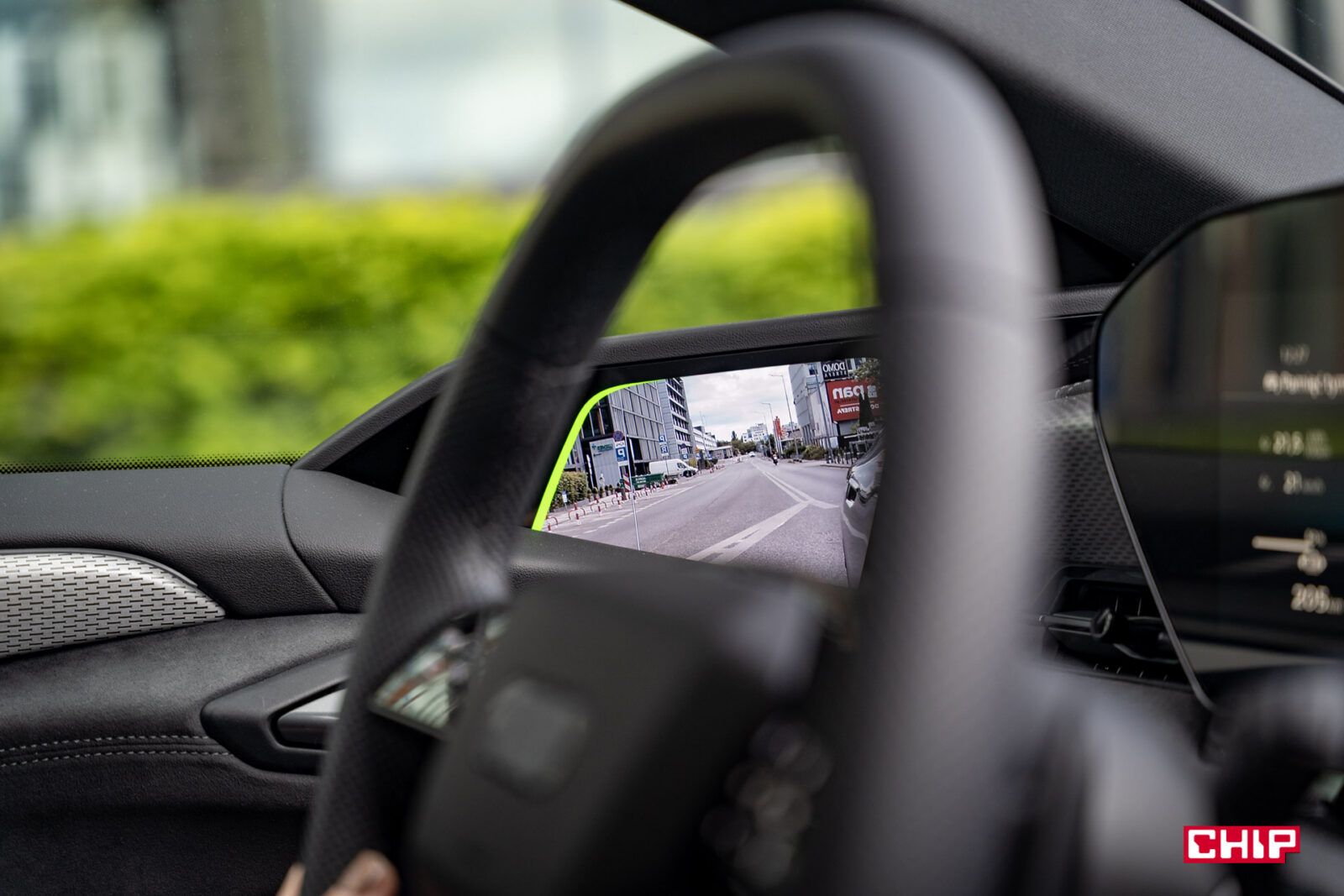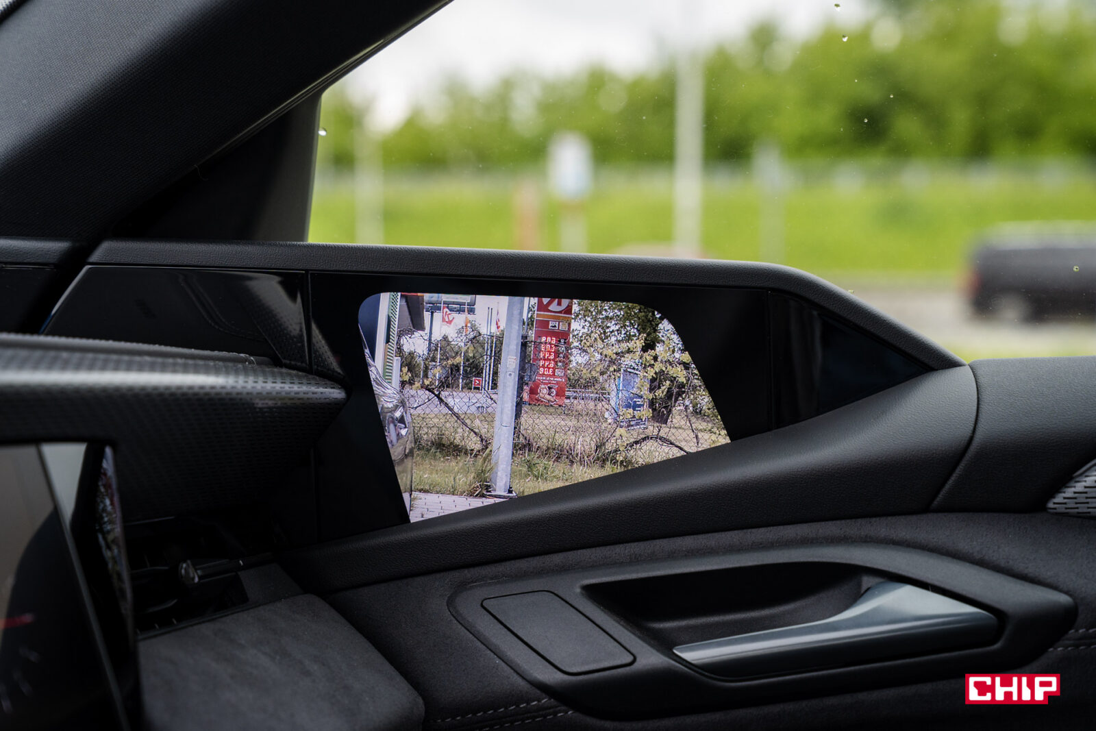 Jak widzicie na zdjęciach, nie mamy tutaj klasycznych lusterek, a dwie kamery, z których obraz przeniesiony jest na wyświetlacze umieszczone na desce rozdzielczej. Jeździłam kilkoma autami, w których zastosowano to rozwiązanie i przyznaję bez bicia – ani to ładnie nie wygląda, ani nie jest szczególnie wygodne. Jasne, da się do tego przyzwyczaić, tylko nie mam zielonego pojęcia – po co? Na szczęście to element, za który trzeba dopłacić, w standardzie mamy klasyczne lusterka, więc jest to opcja dla zagorzałych fanów rozwiązań, które zaliczyłabym do… Powiedzmy, że niszowych. Jeśli chcecie to mieć, jest taka możliwość, jeżeli nie, macie klasyczne lusterka.