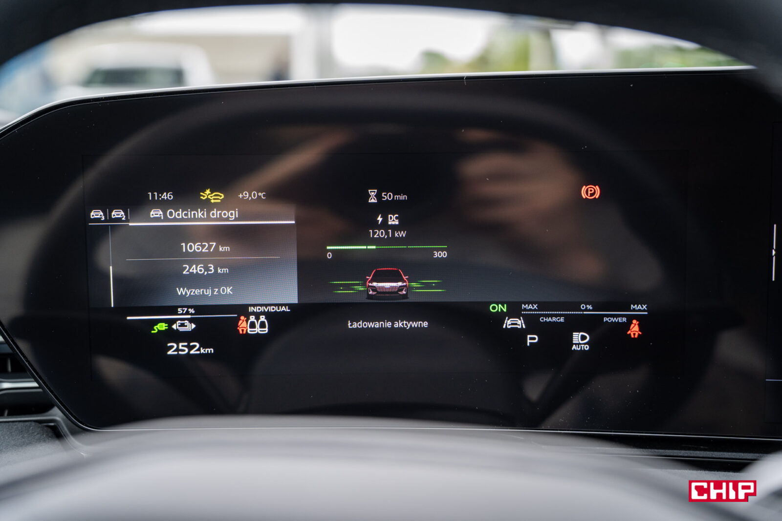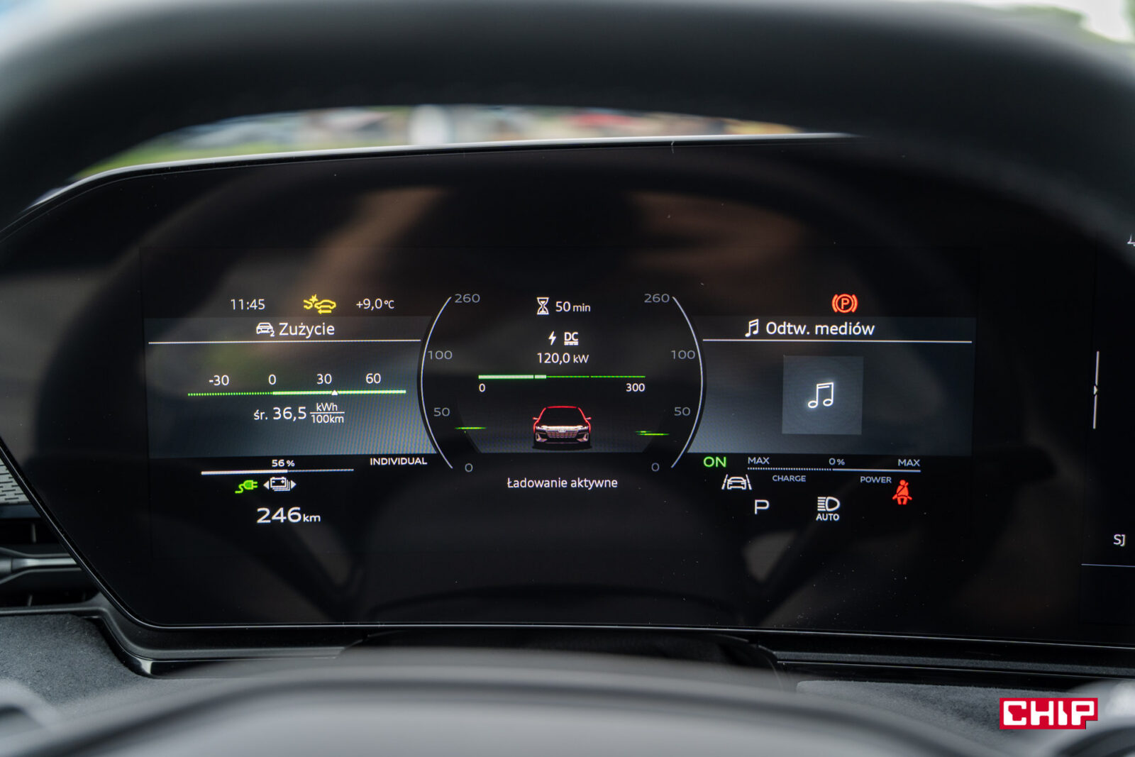 Od razu zaznaczam: nie mierzyliśmy zużycia prądu w trybie efficiency. Osobiście komfort jazdy stawiam ponad oszczędność prądu i coś mi mówi, że potencjalny właściciel Audi S6 Avant e-tron będzie miał podobne podejście. Dodatkowo – będzie miał gdzie to auto ładować, więc 50 km zasięgu w jedną, czy w drugą stronę nie zrobi mu najmniejszej różnicy. Tym bardziej, że to nie są wyniki jakich bym się spodziewała po aucie z taką mocą, o takiej masie! Bez pokazywania palcami, ale konkurencja zza oceanu (a także część konkurencji z Niemiec) mogłaby się od Audi wiele nauczyć w tym zakresie.