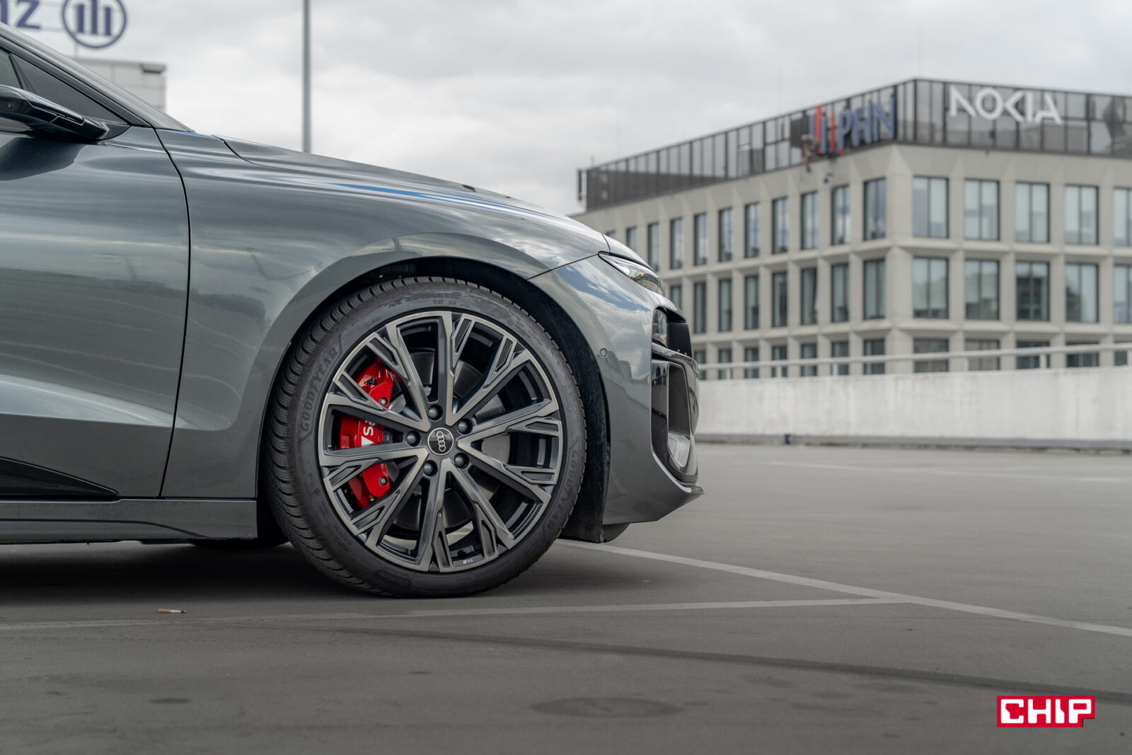 S6 e-tron został seryjnie wyposażony w 18-calowe, czarne zaciski hamulcowe i 20-calowe obręcze, dostępne są również obręcze 21-calowe. Czy warto za nie dopłacić? Jasne, wyglądają obłędnie, ale te, które otrzymacie w standardzie, również nie przyniosą Wam wstydu.