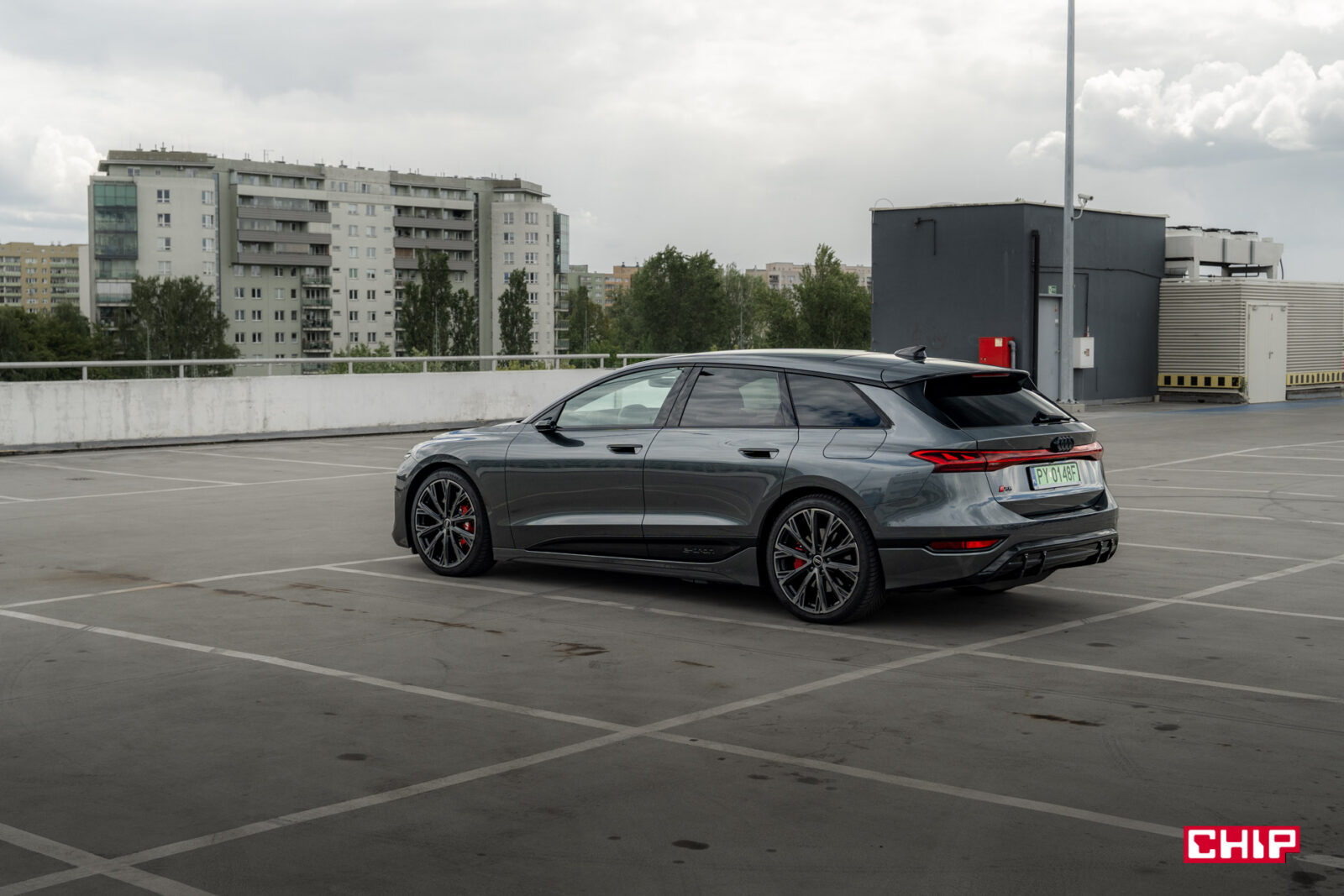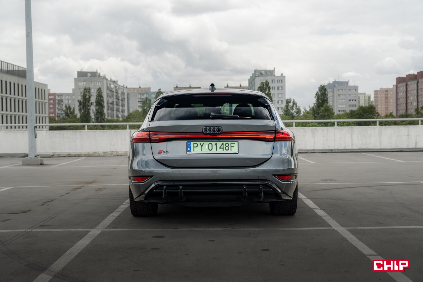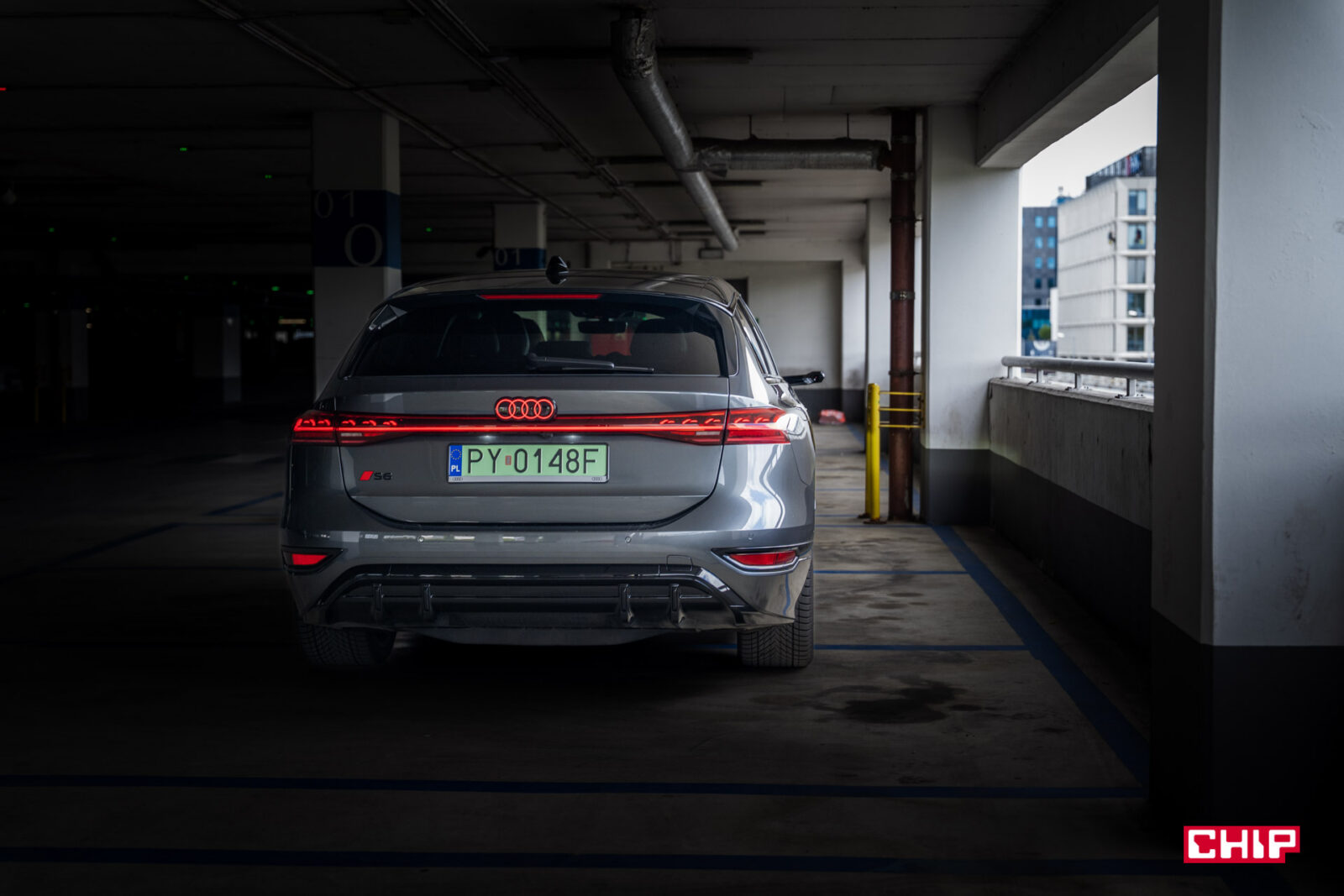 Zacznijmy od suchych faktów. S6 Avant e-tron dysponuje napędem quattro i 503 KM mocy systemowej, która przy użyciu funkcji launch control wzrasta do 550 KM, rozpędzając naszego elektryka 0-100 km/h w zaledwie 3,9s. Za moc auta odpowiadają dwa silniki elektryczne, po jednym na każdej osi. Z przodu mamy silnik asynchroniczny (ASM), natomiast z tyłu – kompaktowy silnik synchroniczny z magnesami trwałymi (PSM). Producent nie podaje co prawda rozkładu mocy między tymi silnikami, ale sam rozkład momentu obrotowego prowadzi do ciekawych wniosków. Przedni silnik dysponuje 275 Nm, natomiast tylny to aż 580 Nm. Producent zadbał o to, aby korespondowało z tym odpowiednie ogumienie, na przedniej osi mamy 235/45 R20, a na tylnej 265/40 R20, więc tylne oponą są szersze i mają niższy profil. Tak, ten układ napędowy zdecydowanie preferuje przekazywanie siły napędowej na tylną oś, nawet przy pełnym obciążeniu auta. Oczywiście, jeżeli zajdzie taka potrzeba, rozdział momentu obrotowego zostanie dostosowany do warunków na drodze w ciągu milisekund tak, aby wyciągnąć kierowcę z ewentualnych tarapatów, ale pomijając takie przykre okoliczności, zadbano o to, aby kierowca cieszył się stabilną, ale też dynamiczną jazdą.