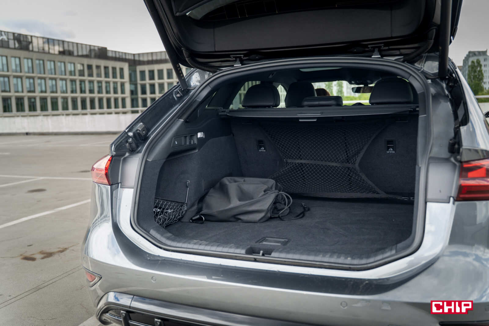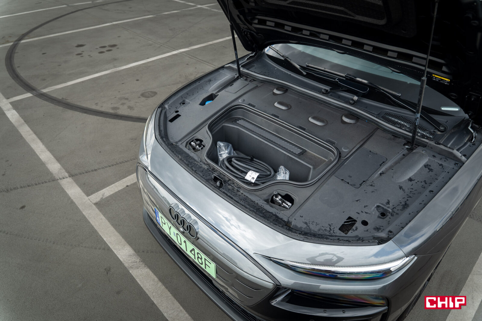 Audi S6 Avant e-tron oferuje dwa bagażniki. Z przodu jest to skromny schowek o pojemności 27 litrów. Niewiele, ale to wystarczy, aby zmieścić w nim przewody do ładowania.