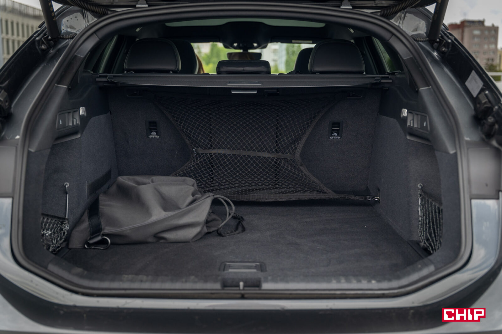 Z tyłu dostajemy solidne 502 litry. Przestrzeń załadunkowa jest długa, szeroka, z płaską podłogą i dodatkowymi siatkami. Jest to wszystko bardzo praktyczne. Pod podłogą mamy jeszcze nieduży schowek na zestaw naprawczy do opon.