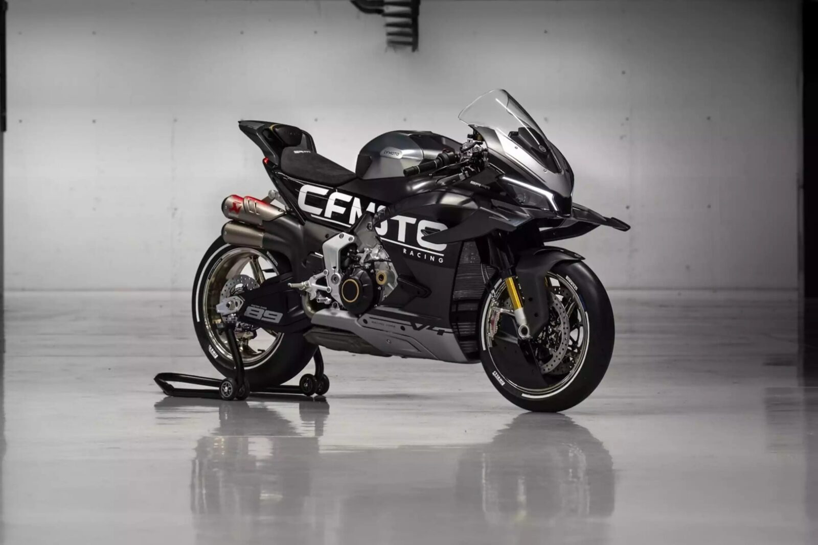 CFMoto nie poskąpiło środków na zaawansowane rozwiązania techniczne. Motocykl V4 SR-RR został wyposażony w aktywne skrzydła aerodynamiczne, które automatycznie dostosowują się do warunków jazdy, prawdopodobnie współpracując z półaktywnym zawieszeniem elektronicznym. Specyfikacja techniczna obejmuje między innymi opcjonalny pełny tytanowy układ wydechowy Akrapovič spełniający normę Euro5+, kierownicę typu clip-on, podwójne reflektory LED oraz specjalne kanały chłodzące dla zacisków i tarcz hamulcowych Brembo. Rozwiązania te mają zapewnić nie tylko znakomite osiągi, ale również stabilność i precyzyjną kontrolę przy ekstremalnych prędkościach.