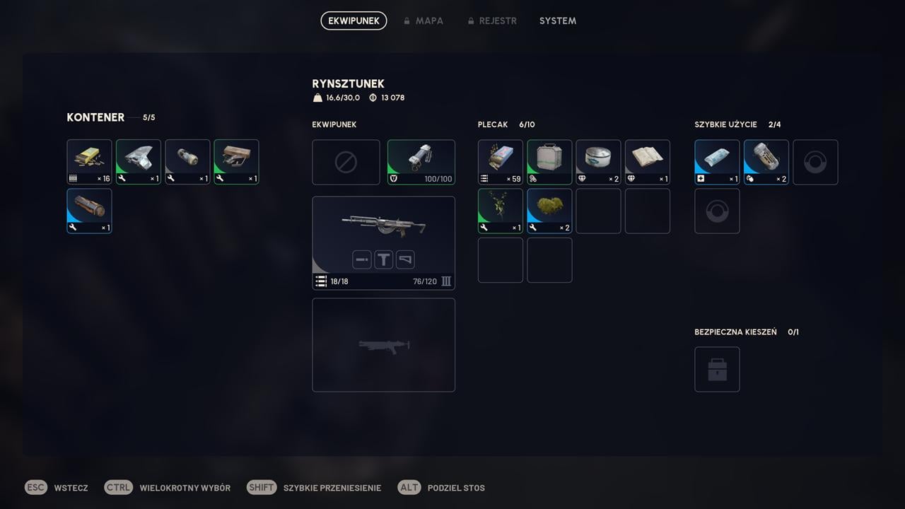 Zaczynając od plecaków, które — oprócz większej liczby slotów na dodatkowy sprzęt — oferują bonusy (np. leczenie), to te lepsze są wyposażone w bezpieczne kieszenie. Nawet jeśli ktoś nas zestrzeli, ich zawartość pozostanie nasza – to doskonały mechanizm łagodzący karę. Kolejną ciekawostką w naszym arsenale są tarcze działające na zasadzie pola siłowego, zwiększającego naszą wytrzymałość w trzech wariantach: lekkim, średnim i ciężkim. Niestety, tarcze muszą być kompatybilne z naszymi plecakami, ponieważ nie każdy plecak udźwignie, na przykład, ciężką tarczę.
