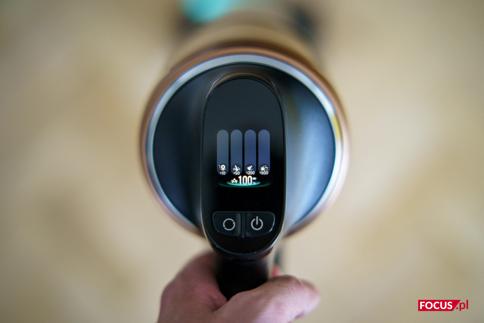 Bogaty zestaw to jedno, ale Dreame Z20 AquaCycle po prostu radzi sobie ze sprzątaniem w wielu scenariuszach. Dzięki ciśnieniu roboczemu sięgającemu nawet 25000 Pa bez problemu poradzimy sobie ze sprzątaniem samochodu, kudłatych dywanów czy twardych podłóg. O tym, jakie brudy przechodzą przez system filtracji HEPA dowiemy się z czytelnego wyświetlacza, gdzie na bieżąco pokazuje się ilość zanieczyszczeń, jak i ich rozmiar. A że filtry zatrzymują 99,99% cząsteczek o wielkości do 0,3 mikrometra, to wyświetlacz pokazuje nam je ostatni raz przed utylizacją.