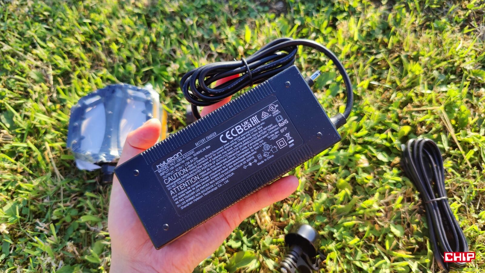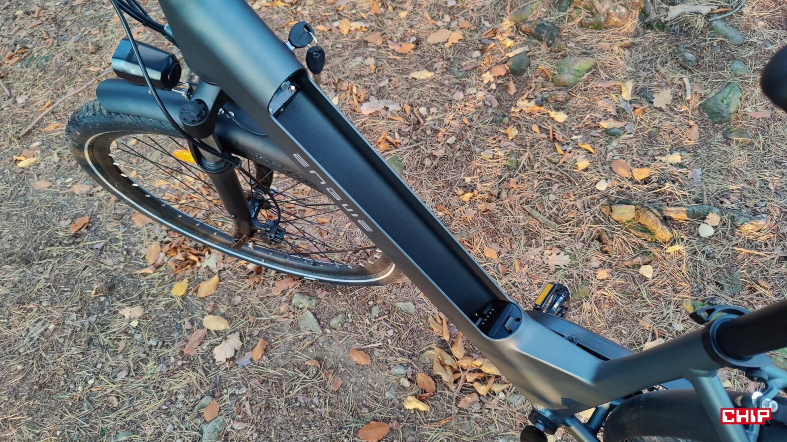 Jeśli z kolei idzie o zasilanie silnika, to energię magazynuje zabezpieczony kluczykiem akumulator litowo-jonowy (36 V/13 Ah) montowany w ramie, który jest na szczęście łatwo wyjmowalny. Około 468 Wh pojemności gwarantuje rozsądny kompromis między wagą a zasięgiem, który w trybie wspomagania PAS 1 ma sięgać nawet 100 km, a przy średnim wspomaganiu PAS 3 spadać do około 80 km, aby na najwyższym trybie wystarczać na maksymalnie 65 km. Ładowanie trwa zaś około 6-7 godzin z użyciem dołączonej ładowarki 42 V/2 A, więc najlepiej ładować taki akumulator przez noc. Ważne dla użytkowników np. w blokach jest to, że akumulator można wyjąć w sekundę i zanieść do mieszkania, a rower zostawić w piwnicy lub przypięty na dole.