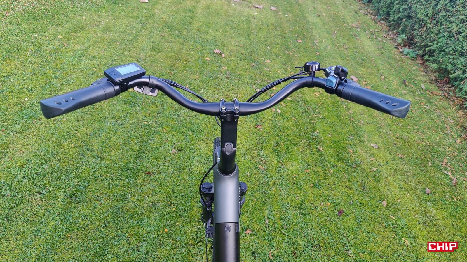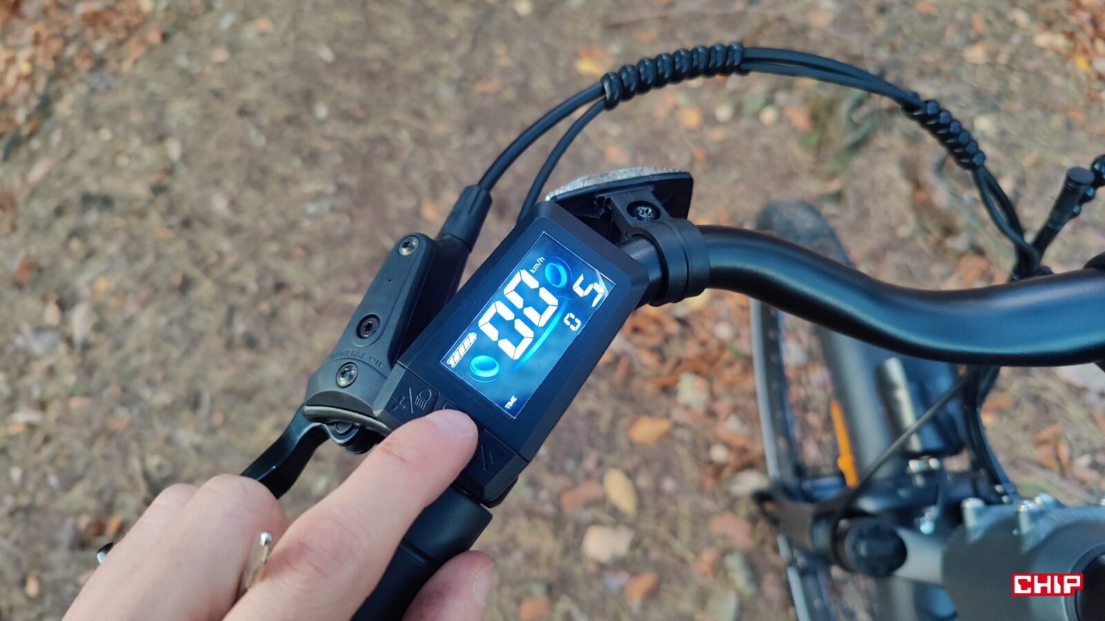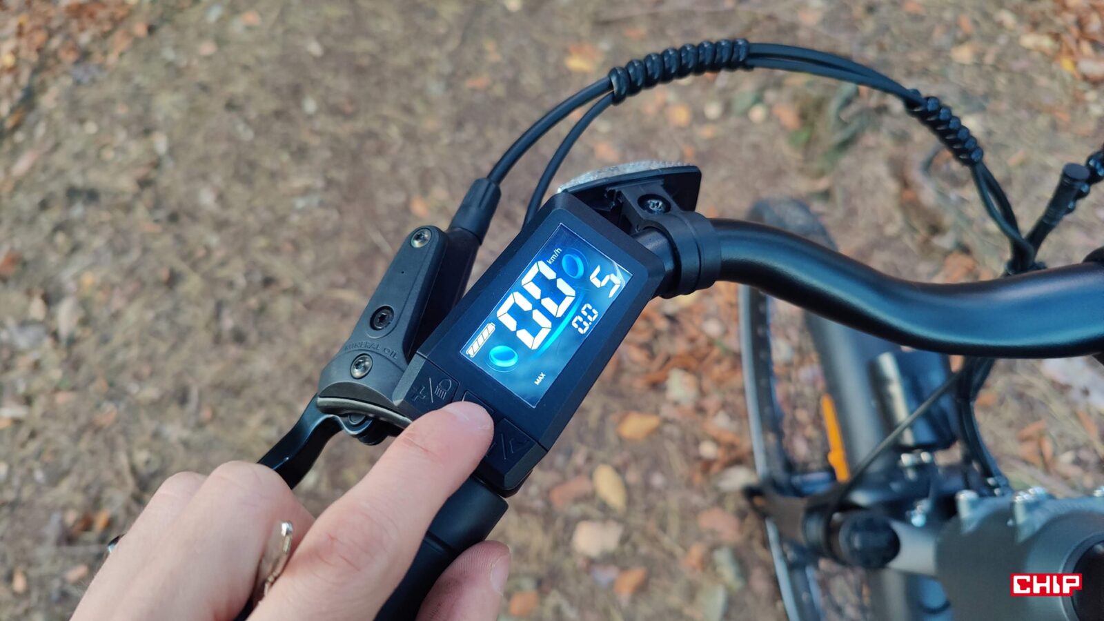 Cały rower jest fabrycznie wyposażony jak solidne miejskie narzędzie do podróży – zarówno tych małych, jak i dużych – nieważne, czy w deszczu czy po zmroku. Dostajemy bowiem kompletne oświetlenie na przód i tył, pełne błotniki, osłonę łańcucha, stopkę oraz deklarowaną odporność IP54 na wodę i brud. Dochodzi do tego kolorowy wyświetlacz LCD na kierownicy, po którym poruszamy się za sprawą trzech przycisków. Podglądamy na nim przejechany dystans, poziom wspomagania i stan akumulatora, a do tego pełni on rolę prostego komputera pokładowego, w którym można np. zmodyfikować maksymalną prędkość wspomagania.
