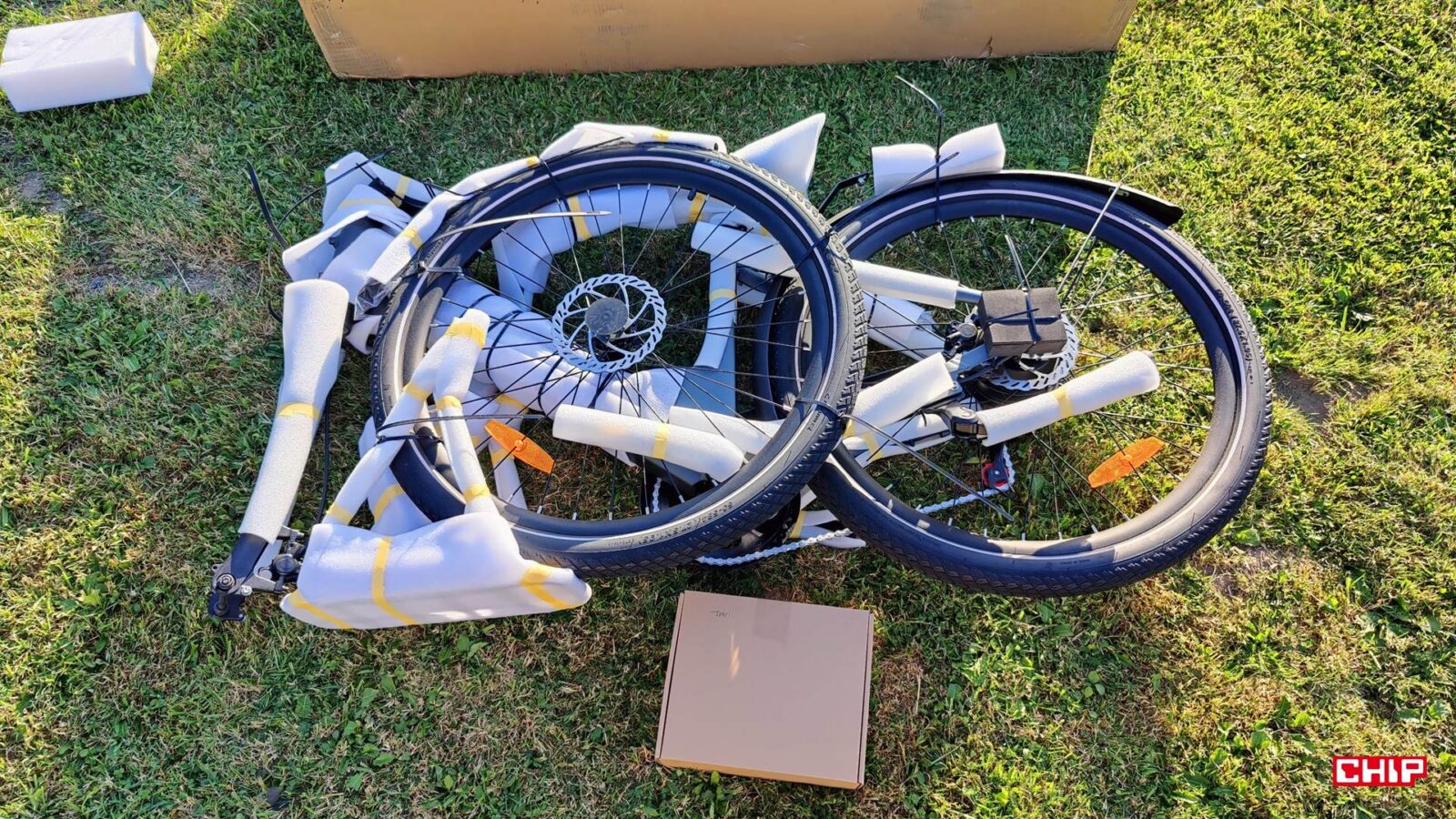 Na etapie składania wychodzi też na jaw masa. Engwe deklaruje wagę własną roweru na poziomie 24 kg, a masa brutto z kartonem i akcesoriami dobija w okolice 31,7 kg. To dużo ponad poziomem ultralekkich mieszczuchów z karbonową ramą, ale jak na miejski rower elektryczny z całym osprzętem do jazdy codziennej (nie zabrakło dzwonka, osłony łańcucha, odblasku, czy sprzężonego z hamulcem światła tylnego), jest to już raczej wynik umiarkowany. To znaczy, że da się ten rower znosić po jednym piętrze czy wciągnąć do windy, ale raczej nie będziemy go targać codziennie na czwarte piętro w bloku bez windy z uśmiechem.