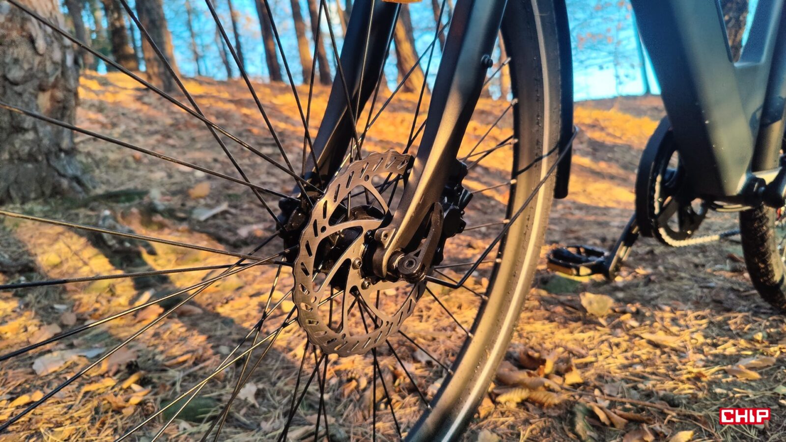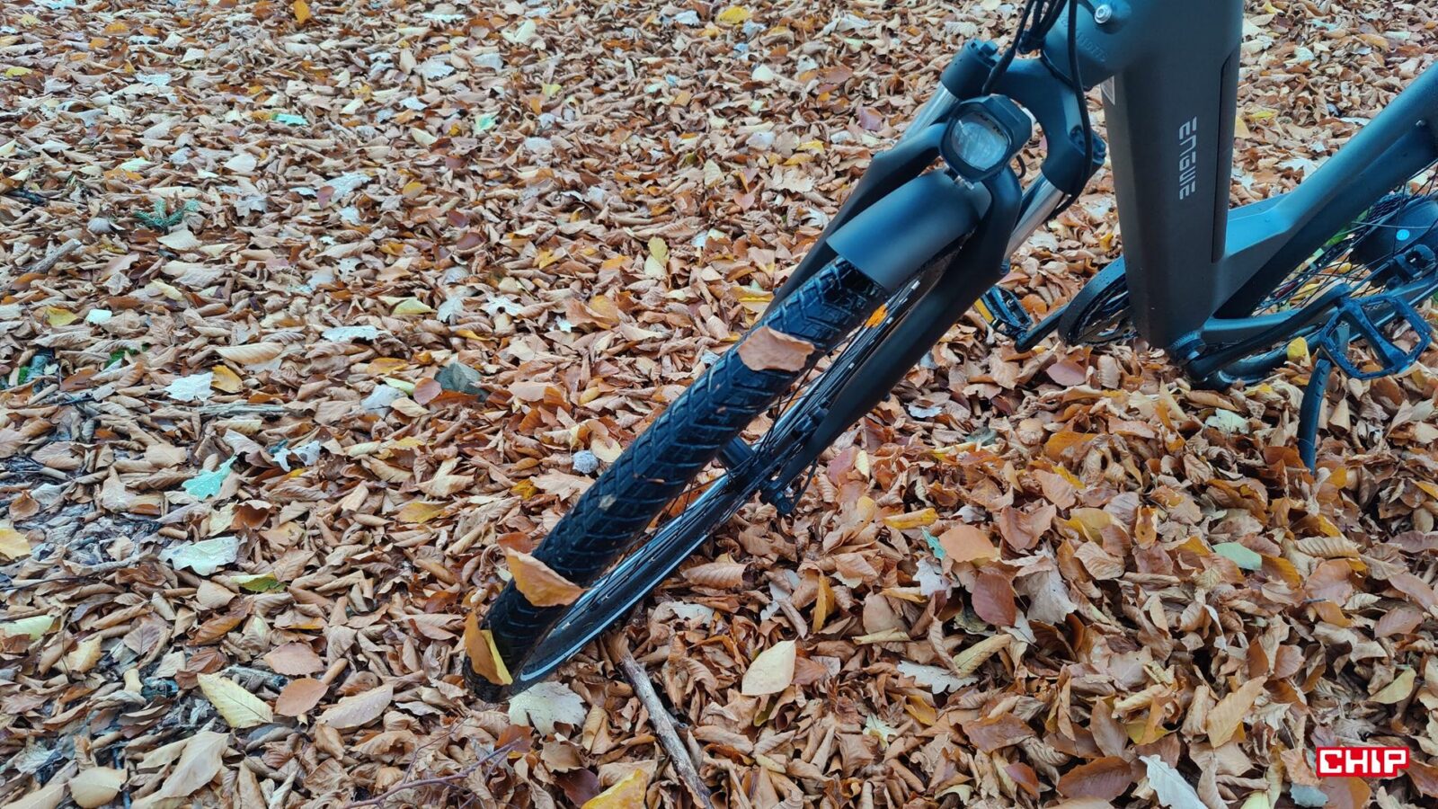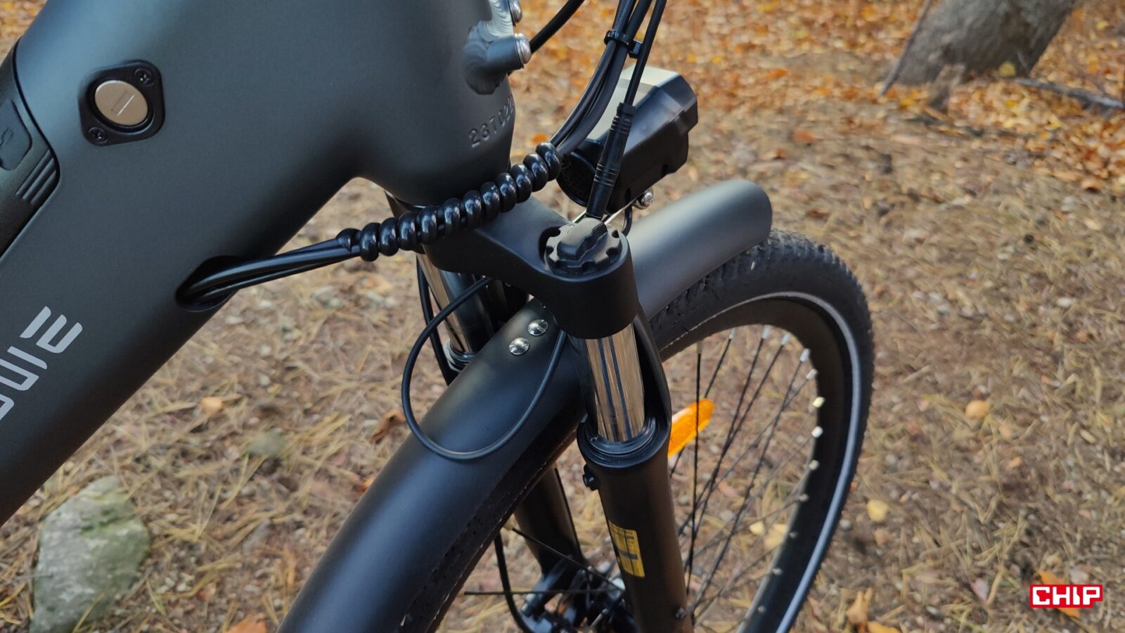 Co ciekawe, producent nie wspomina w specyfikacji o dokładnych danych amortyzowanego widelca, ale aż tak się temu nie dziwię, bo nie jest to jakkolwiek zaawansowana część tego e-bike. Ot prosty, klasyczny miejski widelec na sprężynie o krótkim, bo około 5-cm skoku, który wygładza miejskie nierówności (bruk, mniejsze krawężniki), ale radzi sobe też ze żwirem czy drobnymi korzeniami. Tradycyjnie bowiem P275 SE służył mi nie tylko do jazdy po mieście i drogach, ale też polnych ścieżkach i leśnych traktach. Jak się spisał? Na pewno lepiej niż tego oczekiwałem, bo choć nie jest to model stricte terenowy, to wjechanie na luźniejszy grunt nie powoduje od razu tego, co spotkało mnie na stricte miejskim modelu N1 Air o cieniutkich oponach drogowych.