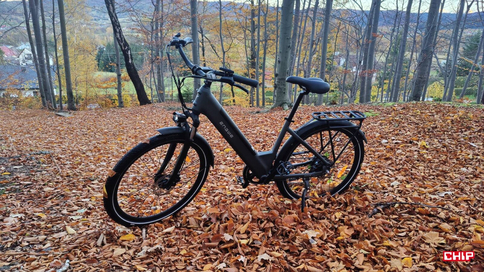 Wszystko to sprawia, że Engwe P275 SE jest rowerem zrobionym pod codzienny dojazd, ale nie zamyka się wyłącznie w roli “rowerka do biura”. Dzięki minimalnej amortyzacji z przodu, wygodnej pozycji za kierownicą i kołom o średnicy 27,5 cala da się nim spokojnie wyskoczyć nie tylko na miasto, ale też poza nie, choć wtedy po prostu nie należy przesadzać z trudnością terenu i udawać, że to jest rower górski, bo po prostu nim nie jest. W lekkim terenie turystycznym da radę, ale w piachu i na korzeniach już nie będzie ratował wielkim skokiem zawieszenia ani agresywną oponą z kolcami. To nie ta półka i nie ten charakter.