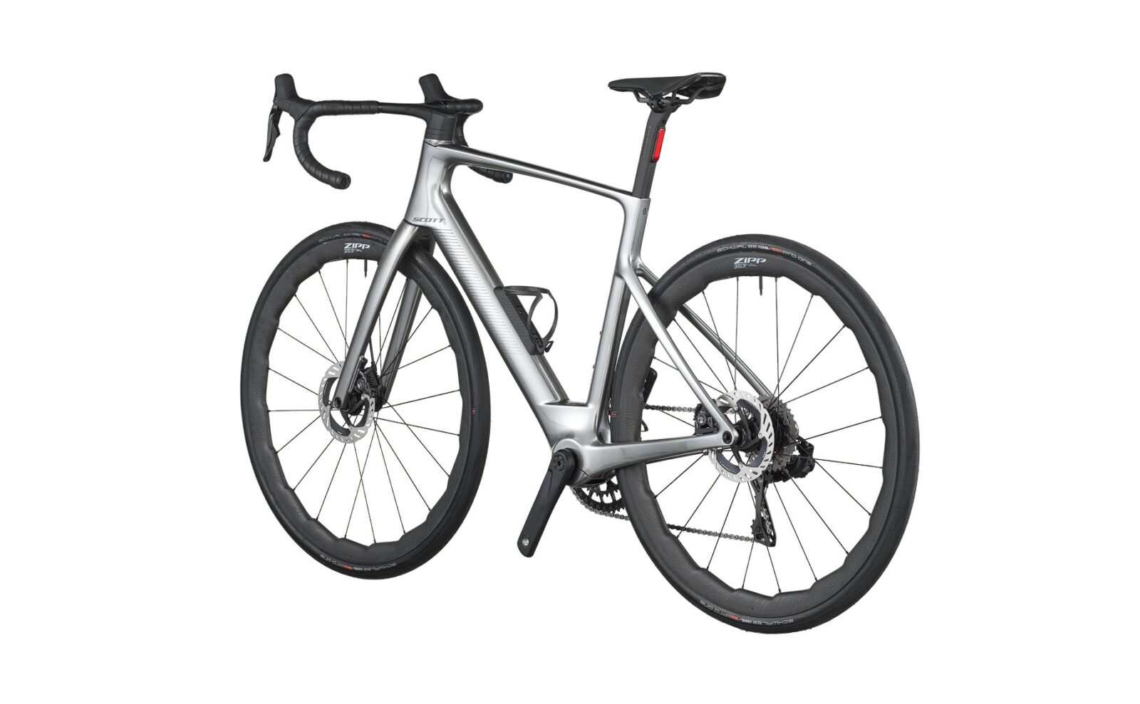 Scott zrezygnował z tradycyjnego wyświetlacza na rzecz dyskretnego TQ umieszczonego w zakończeniu kierownicy. Urządzenie wykorzystuje pięć diod LED do wskazywania trybu jazdy oraz poziomu naładowania akumulatora i… tyle. To rozwiązanie minimalistyczne, które nie przyciąga uwagi i co tu dużo mówić – taki zapewne był cel takiego wyświetlacza. Czy jednak to oznacza, że e-bike działa tylko na jednym trybie wspomagania? Ano nie, bo przełączanie trybów wspomagania odbywa się poprzez przyciski Shimano Di2 zintegrowane z manetkami. Lewa strona odpowiada za zmniejszenie lub wyłączenie asysty, a prawa za jej zwiększenie. System obsługuje protokół ANT+, umożliwiając parowanie z komputerem rowerowym i wyświetlanie szczegółowych danych dotyczących mocy rowerzysty oraz silnika.