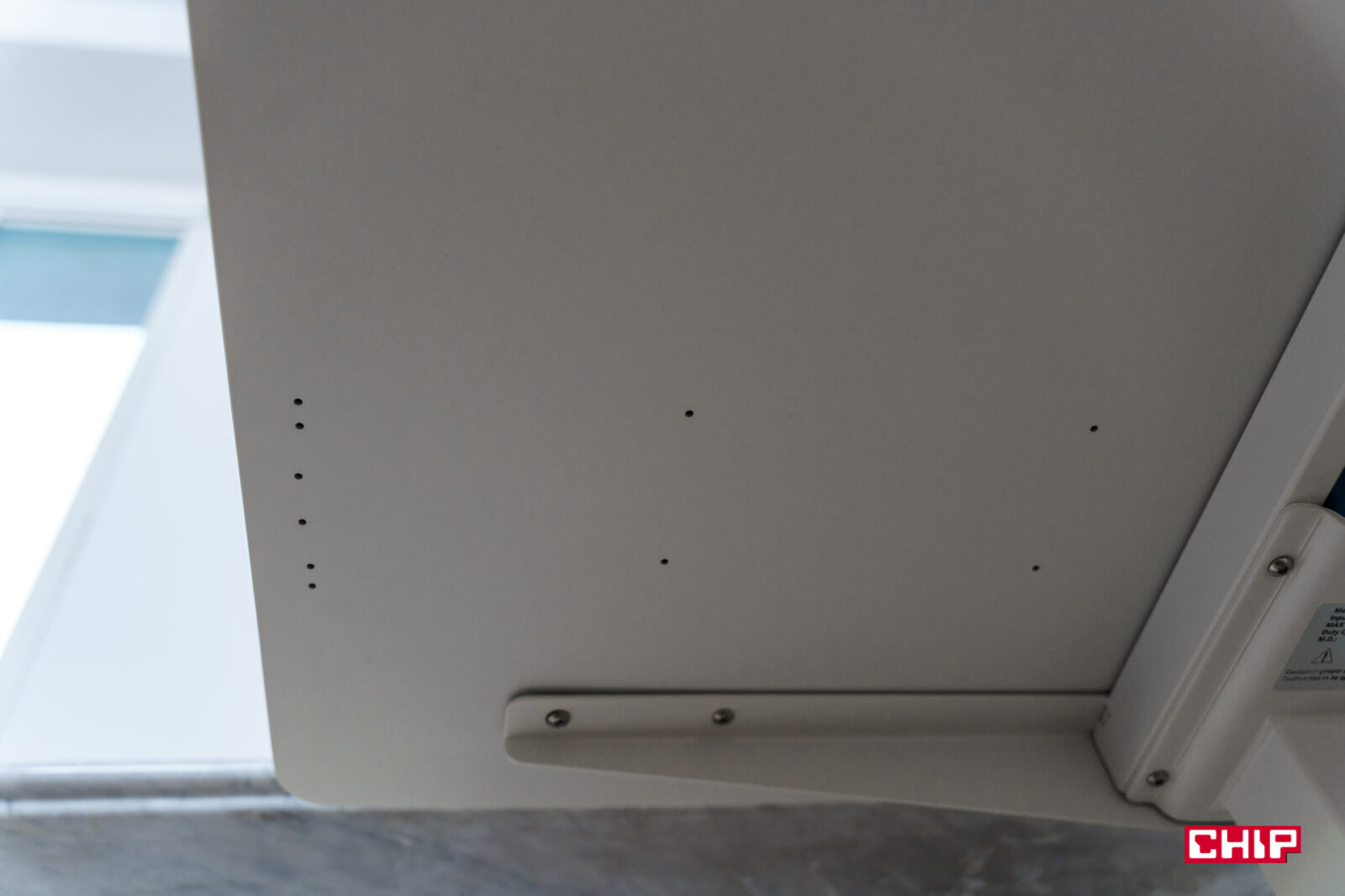 Zacięliśmy się przy ostatnim elemencie, nowości w modelu Flow, czyli pojemnika na listwę zasilającą (jest w zestawie) oraz kable. Czy z winy producenta? Nie do końca. W kartonach zaplątało nam się małe pudełeczko ze śrubami do tego elementu i przez dobre 20 minut kombinowaliśmy, co z tym zrobić… Gdyby nie to, cały proces składania biurka nie zajmie więcej niż 30-35 minut.