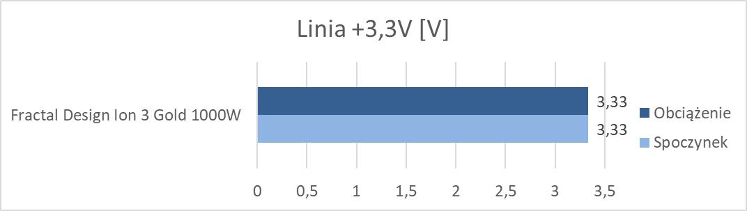 Napięcia są oczywiście całkowicie w normie. Pod obciążeniem widać większy spadek na linii +12V, ale to w granicach normy. Linie +3,3V i +5V mają praktycznie takie same napięcia. W spoczynku wentylator nie obracał się, a pod obciążeniem jest cicho – pod tym względem zasilacz wypada bardzo fajnie. Temperatury również są w porządku, choć w spoczynku mogłaby być trochę niższa.