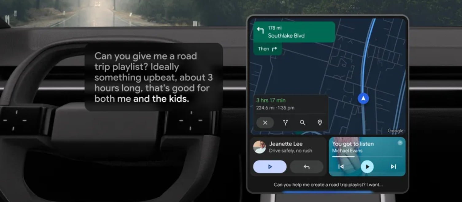 - Generowanie playlist — na żądanie Gemini może generować playlisty w Spotify lub YouTube Music, co z pewnością uprzyjemni długie trasy.