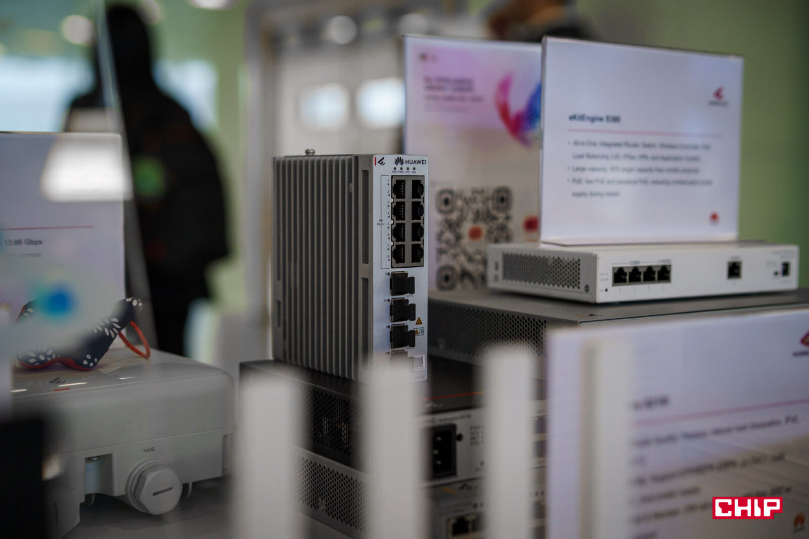 Sprzęt Huawei eKit jest podzielony na cztery główne kategorie. Pierwsza z nich to biuro, a konkretnie inteligentne biuro. Wszystko co potrzebne, aby w biurze była łączność i najnowsze rozwiązania technologiczne. Od podstaw, jak kable światłowodowe, przez routery Wi-Fi 7, Switche, po inteligentne tablice interaktywne IdeaHub B3. W przypadku większych firm dostępne są bardziej zaawansowane routery, w tym przemysłowe punkty dostępu, bardziej wydajne Switche, a nawet dyski SSD do przechowywania danych czy sprzęt serwerowy.