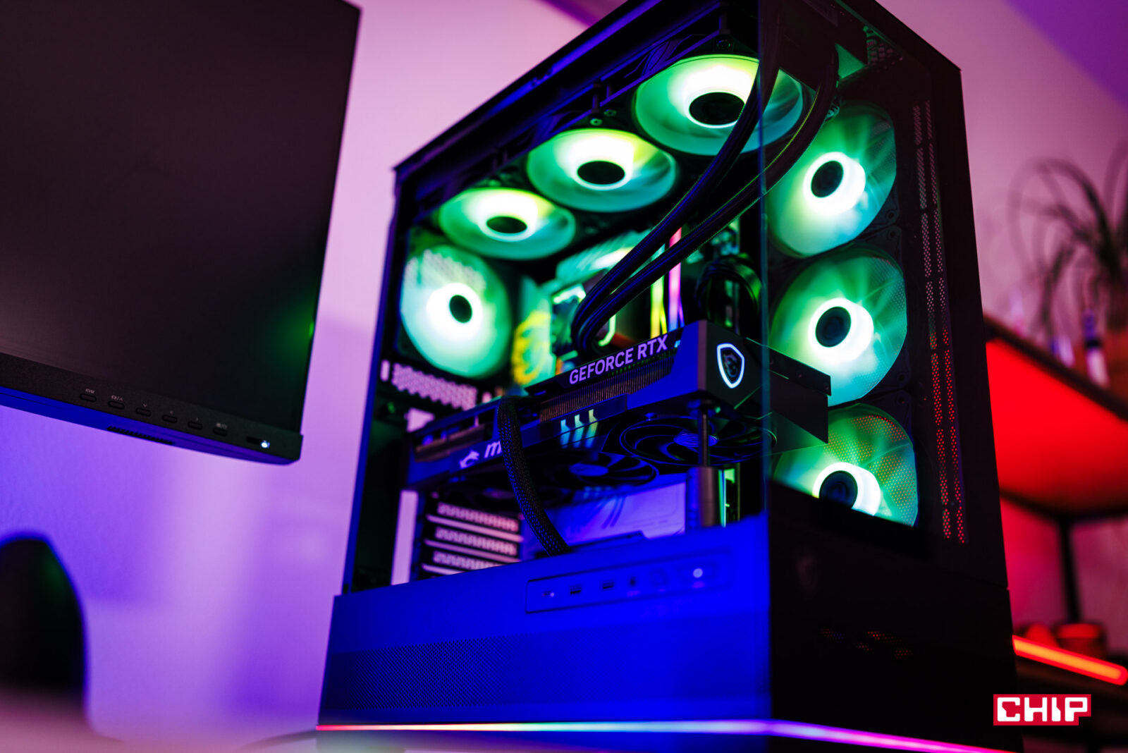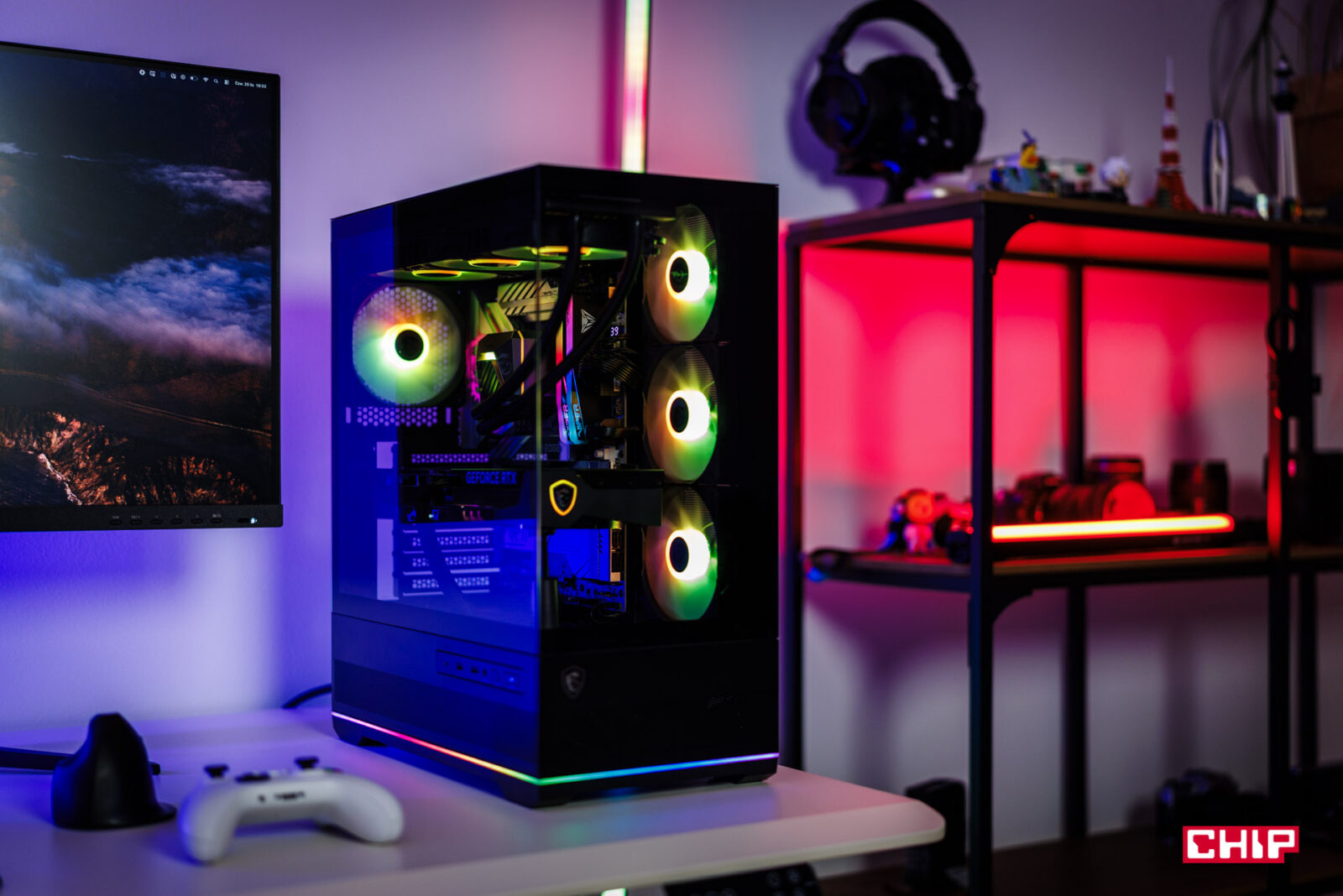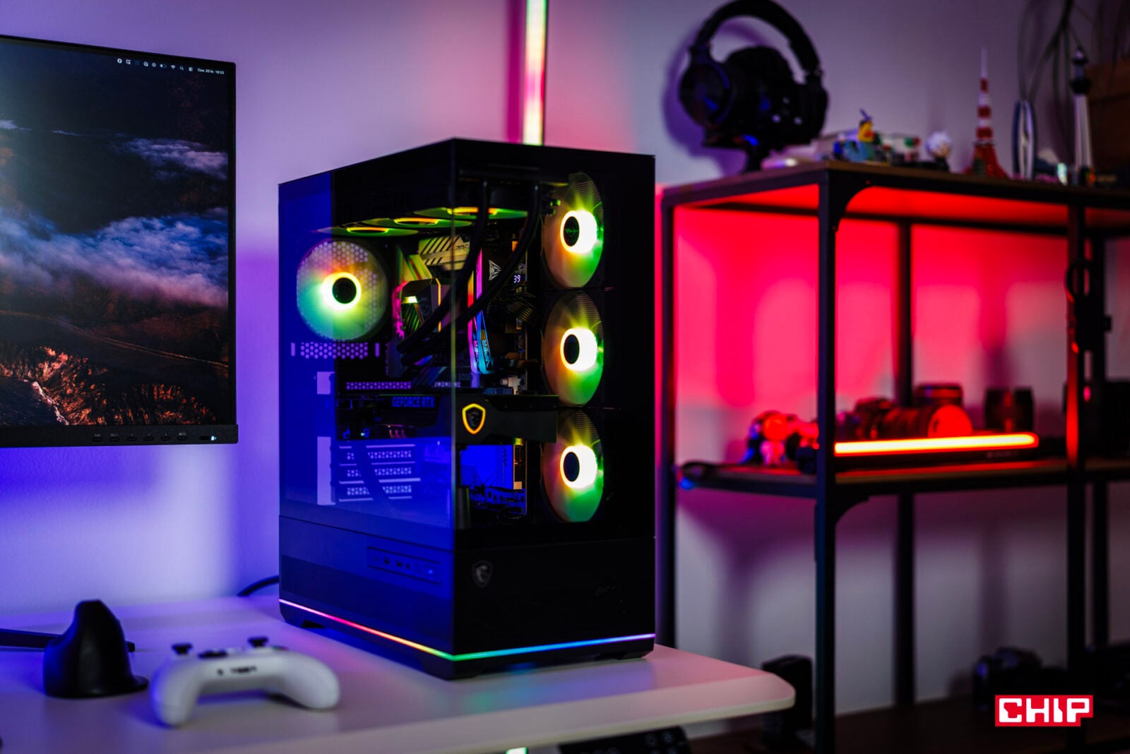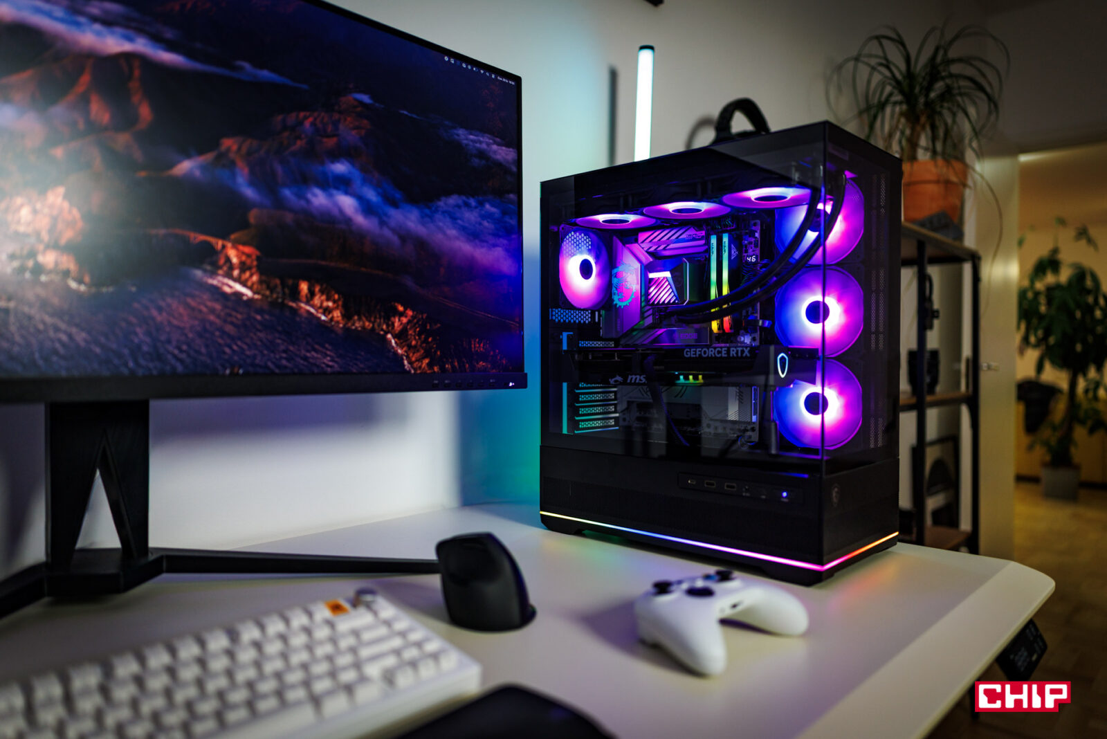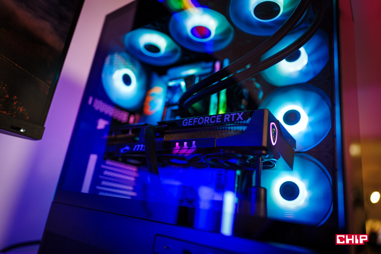 MSI produkuje też wielokrotnie nagradzane chłodzenia pokroju systemu wodnego MAG CORELIQUID A15 360, który zapewnia niskie temperatury procesora przy sensownym poziomie hałasu nawet w mniejszych obudowach pokroju MAG PANO 110R PZ. Trudno się jednak temu dziwić, bo w tej szczególnej obudowie MSI pokazało klasę, łącząc solidny przepływ powietrza z chwytającym za serce widokiem na wnętrze komputera za sprawą szklanego panelu. Wszystko to “nakarmi” elektronami zasilacz MPG A1000G PCIE5 w standardzie ATX 3.1 z nowszym przewodem 12V-2×6, ale to i tak nie wszystko. Wisienką na torcie jest dysk SPATIUM M480 PRO 2 TB na PCIe 4.0, który błyskawicznie ładuje gry i nie rozgrzewa się nawet pod znacznym obciążeniem.