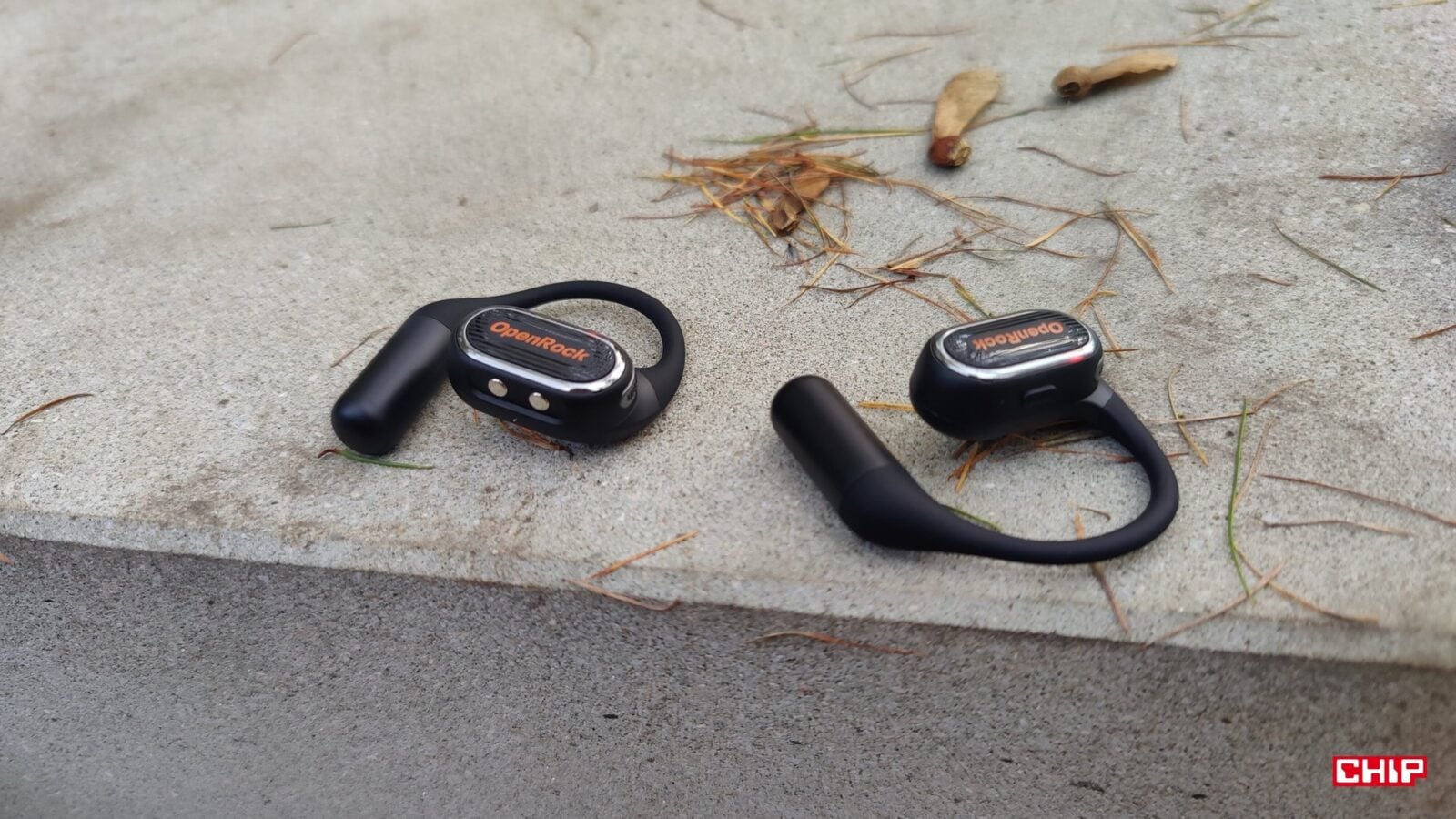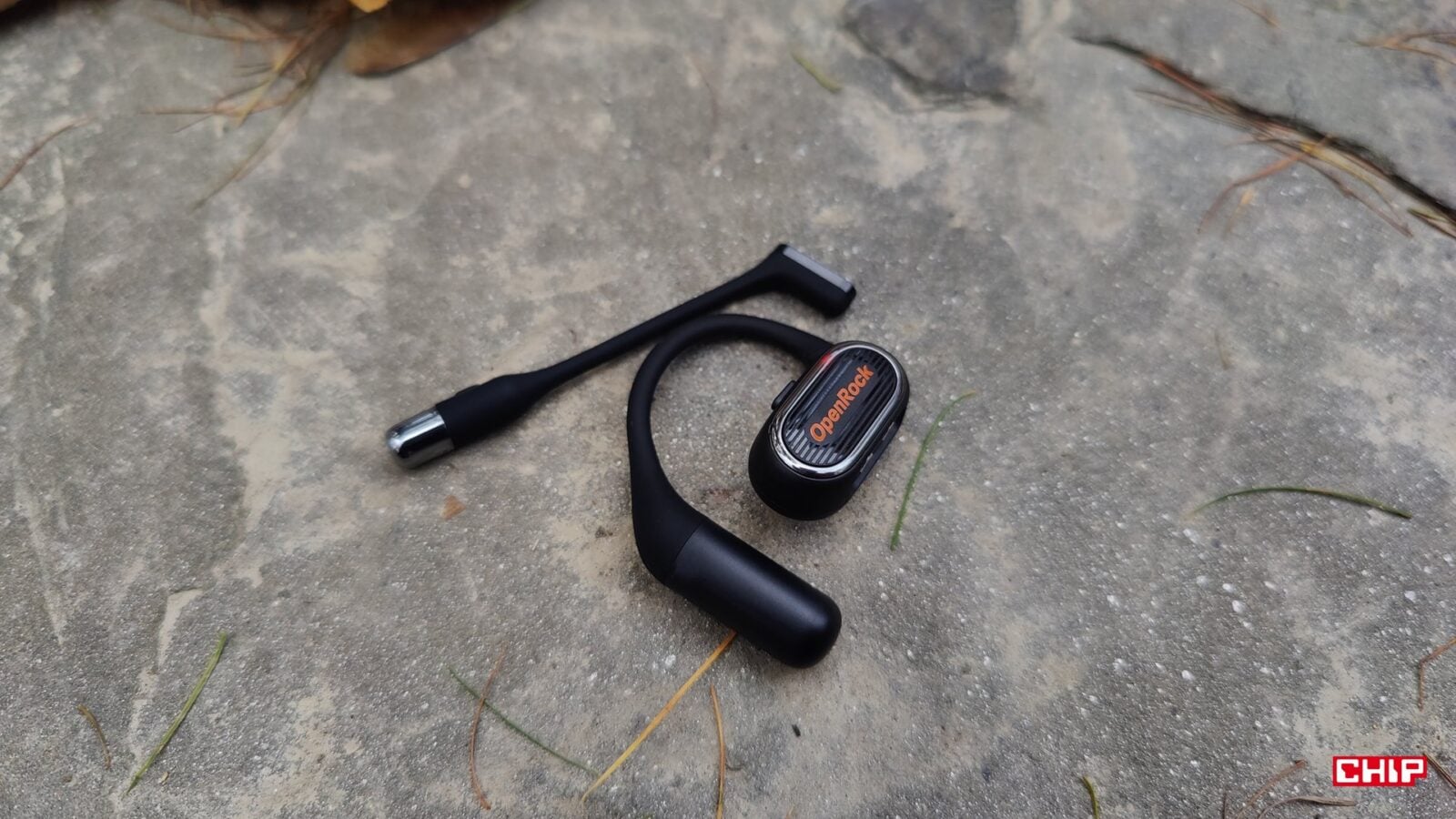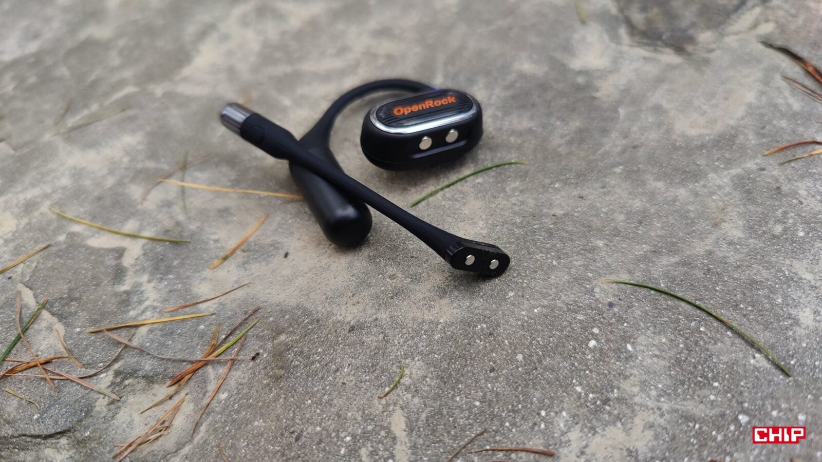 Po przeanalizowaniu 30 prototypów i przeprowadzeniu 500 praktycznych testów, firma OpenRock postawiła na 6,9-stopniowy kąt nachylenia między dwoma modułami. W efekcie moduł główny z przetwornikiem znajduje się tuż nad naszym kanałem słuchowym, drucik w silikonie opiera się na górnej części naszej małżowiny, a zaoblona “pigułka”, w której znalazł się najpewniej przede wszystkim akumulator (62 mAh), opiera się na tylnej części ucha. Deszczem i potem nie musicie się przejmować, a to dzięki certyfikatowi IPX7, a jeśli idzie o jakość wykonania oraz trwałość, trudno mieć do firmy zastrzeżenia, więc ocena wyglądu to już kwestia stricte subiektywna. W skrócie więc? Nie są to kolejne typowe słuchawki, a jeśli obawiacie się o ergonomię, to mam w tej kwestii dobrą i złą wiadomość.