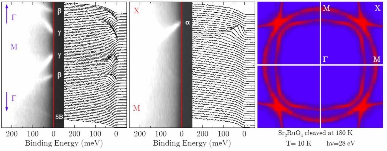 Aby upewnić się, że nadprzewodnictwo na powierzchni jest rzeczywiście związane z topologicznymi stanami, a nie tylko jakimś przypadkowym efektem próbki, badacze sięgnęli po spektroskopię fotoemisyjną z rozdzielczością kątową (ARPES). Wykorzystując zarówno klasyczne promieniowanie ultrafioletowe o energii 21,2 eV, jak i precyzyjny laser 6 eV, zmapowali, jak elektrony na powierzchni PtBi₂ zajmują różne pędy i energie. Dzięki temu mogli bezpośrednio zobaczyć łuki Fermiego i śledzić, jak pojawienie się nadprzewodnictwa otwiera i zamyka szczeliny w tych pasmach elektronowych.