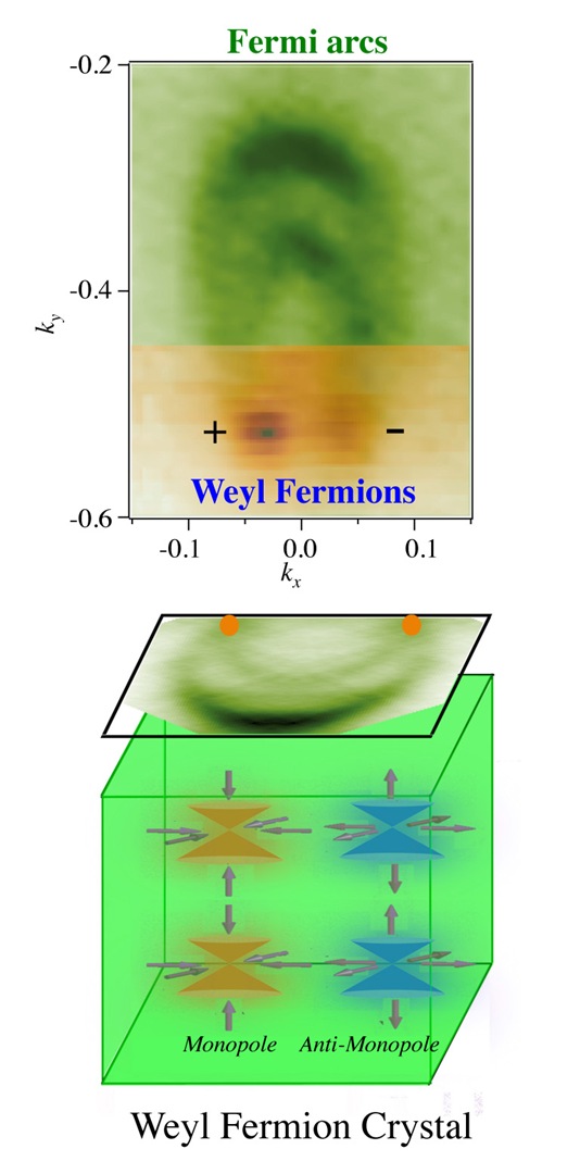 PtBi₂ należy do rodziny tzw. półmetali Weyla. W takich kryształach struktura pasm elektronowych w przestrzeni pędu zawiera szczególne punkty, nazywane węzłami Weyla, a na powierzchni pojawiają się otwarte, niezamknięte ścieżki ruchu elektronów, znane jako łuki Fermiego. Pojedynczy łuk na górnej powierzchni nie tworzy samodzielnie pełnej pętli. Domyka się dopiero z partnerem na spodniej stronie, dzięki czemu cały “obwód” elektronowy rozciąga się przez całą grubość próbki.