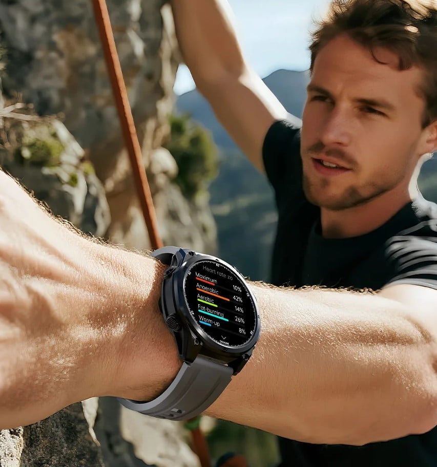 Wśród standardowych funkcji zdrowotnych znajdziemy optyczny czujnik do monitorowania tętna, natlenienia krwi (SpO2), snu i stresu, a także barometryczny wysokościomierz – ważny dla alpinistów i turystów górskich. Zegarek oferuje też ponad 170 trybów sportowych i umożliwia prowadzenie połączeń głosowych po połączeniu ze słuchawkami Bluetooth.