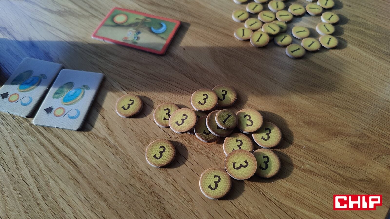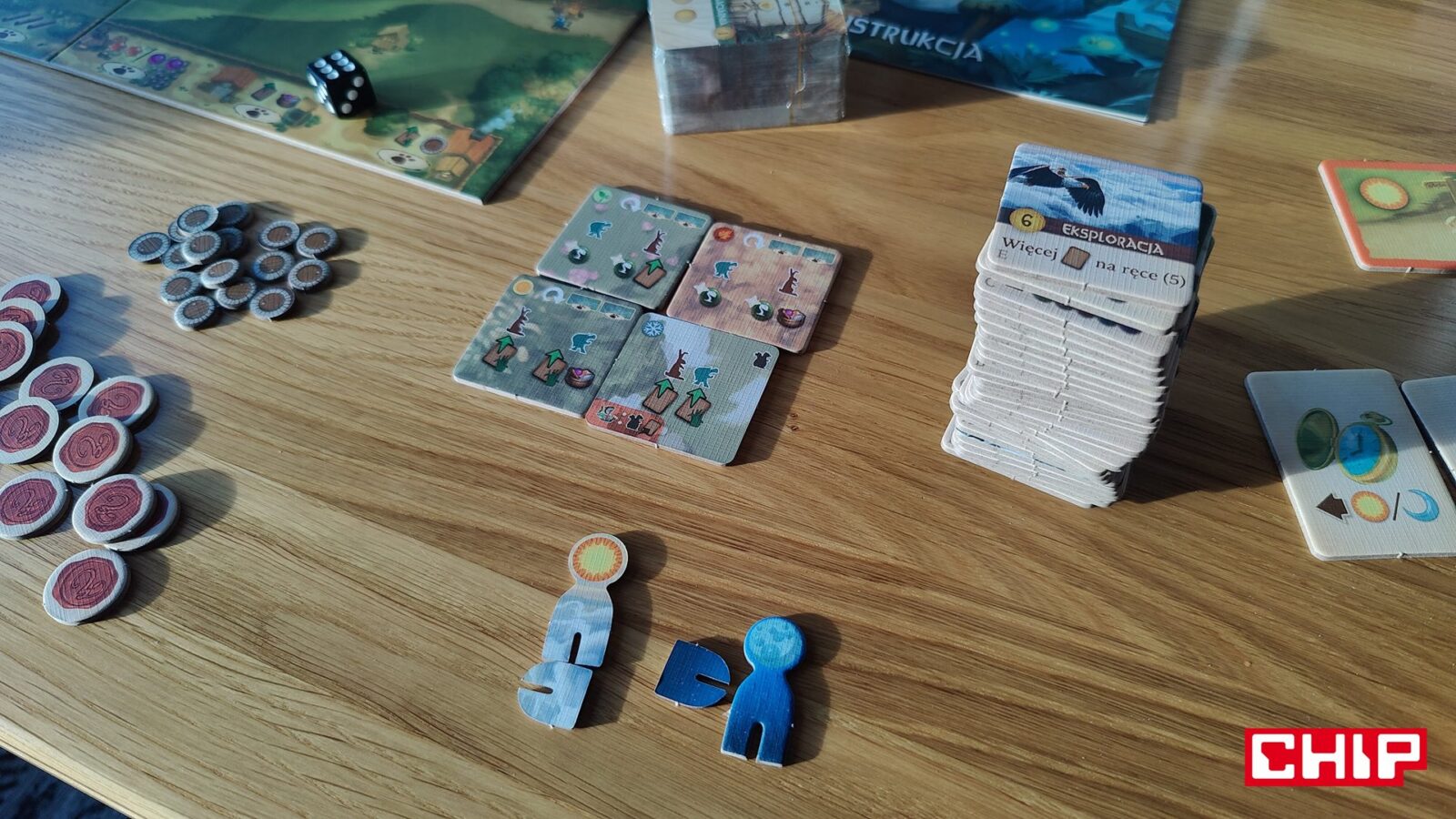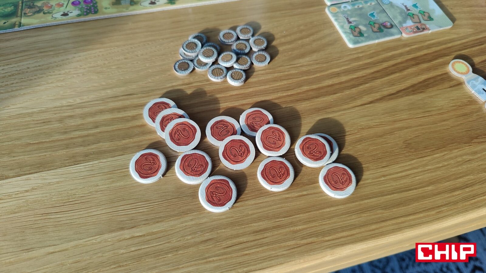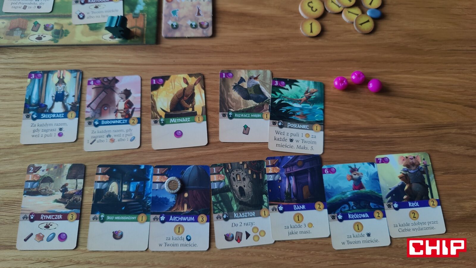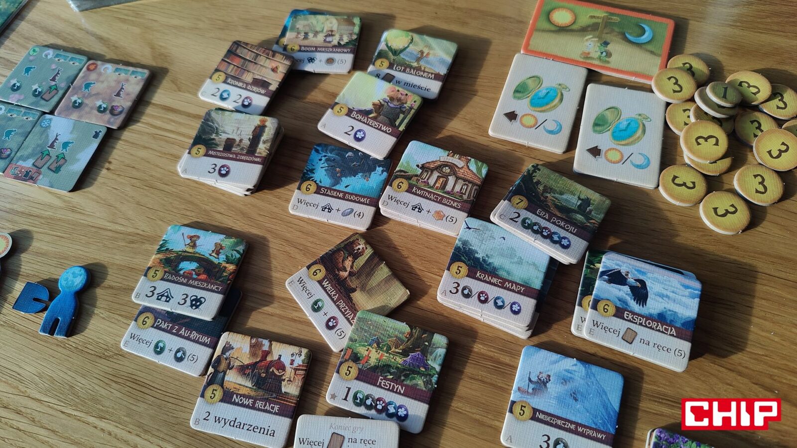 Sam trzon rozgrywki jest znajomy. Stawiasz robotnika, zbierasz gałązki, żywicę, kamyki i jagody, a potem wymieniasz je na budynki i stworzenia podlegające pod pięć różnych “rodzajów”. Różnica polega na tym, jak gra zarządza dostępem do kart oraz ogranicza każdą porę roku. Mamy bowiem dostęp do trzech robotników, a partia kończy się po czterech porach roku. Same karty zagrywamy z dwóch źródeł, bo z ręki lub z pola ogólnodostępnej łąki, o ile karty sąsiadują z przynajmniej jednym znacznikiem Słońca lub Księżyca. Po każdej turze znacznik przesuwa się o jedno pole, więc okna na akcje są bardzo krótkie, a jeden z graczy może “ukarać” drugiego, który zwleka z rozstawieniem robotników.