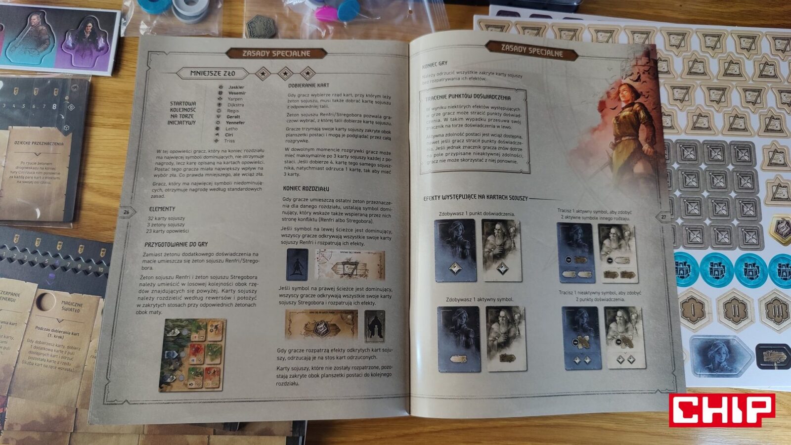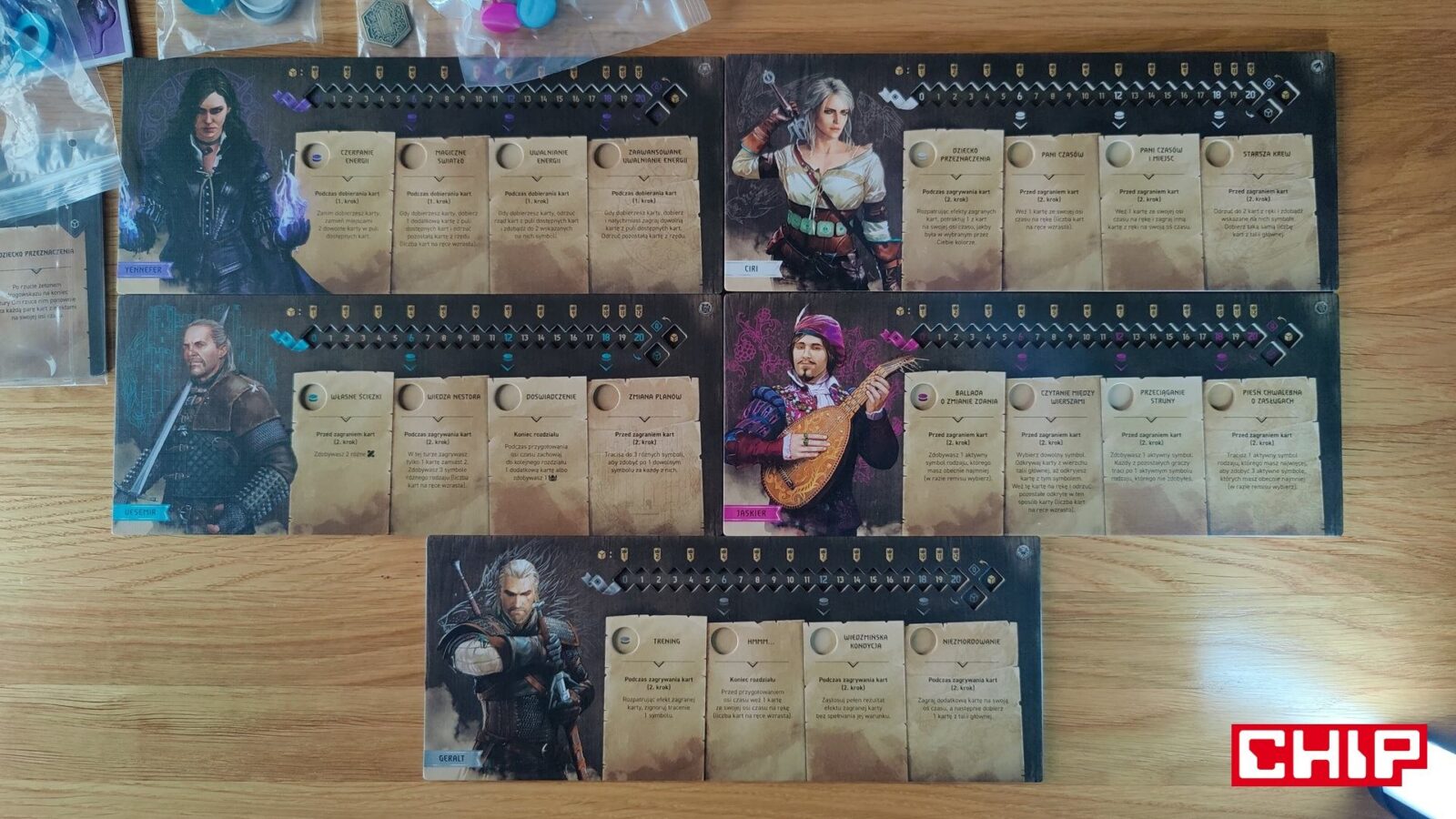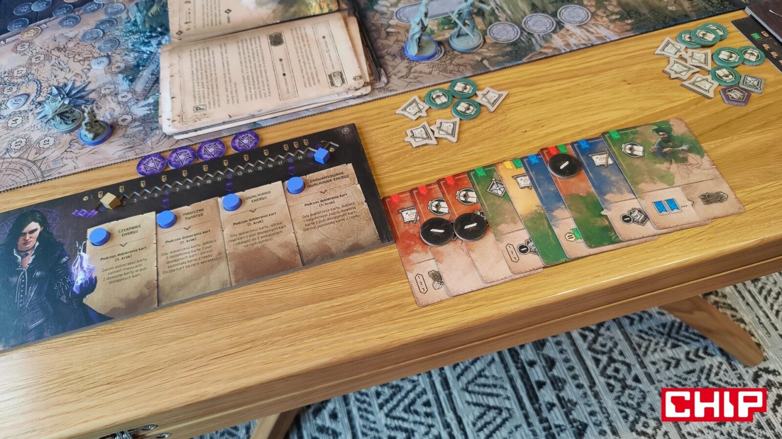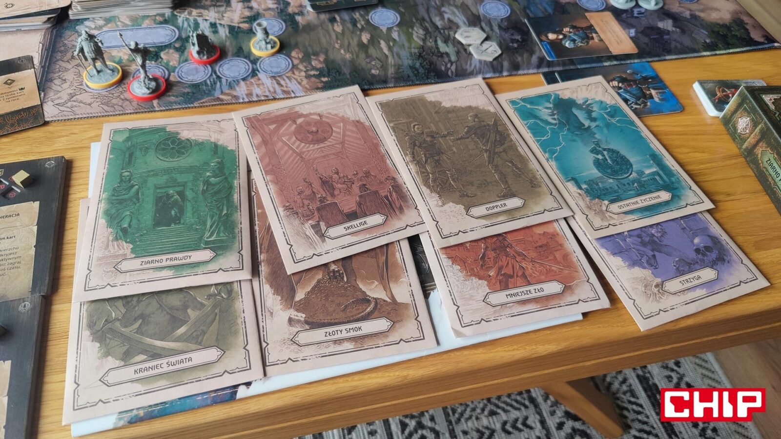 O ile ponowne używanie grafik można przełknąć (zwłaszcza jak nie jesteście tak zaznajomieni z wiedźmińskimi grami), tak samą formę ozdobienia kart akcji już niezbyt. Część z nich rzeczywiście oddaje to, co robi dana karta (czarownica na karcie zapewniającej magię, zwiadowca na tej gwarantującej żeton eksploracji), ale fakt, że w puli kart ogólnodostępnych często znajdują się postaci główne, jest kolejnym dowodem na to, że w szacie graficznej ktoś po prostu poszedł na łatwiznę. Jestem prostym graczem – gram Geraltem, to uważam, że karty-akcje przedstawiające Geralta właśnie powinny być dostępne wyłącznie dla mnie. Gdyby nie była to gra planszowa nastawiona na opowiadanie historii i kreowanie (niby) własnej opowieści, to machnąłbym na to ręką, ale takie coś to w moich oczach po prostu bardzo nieumiejętne pójście na łatwiznę. Nie jest to jednak skala tak wielka, jak w przypadku opowieści.