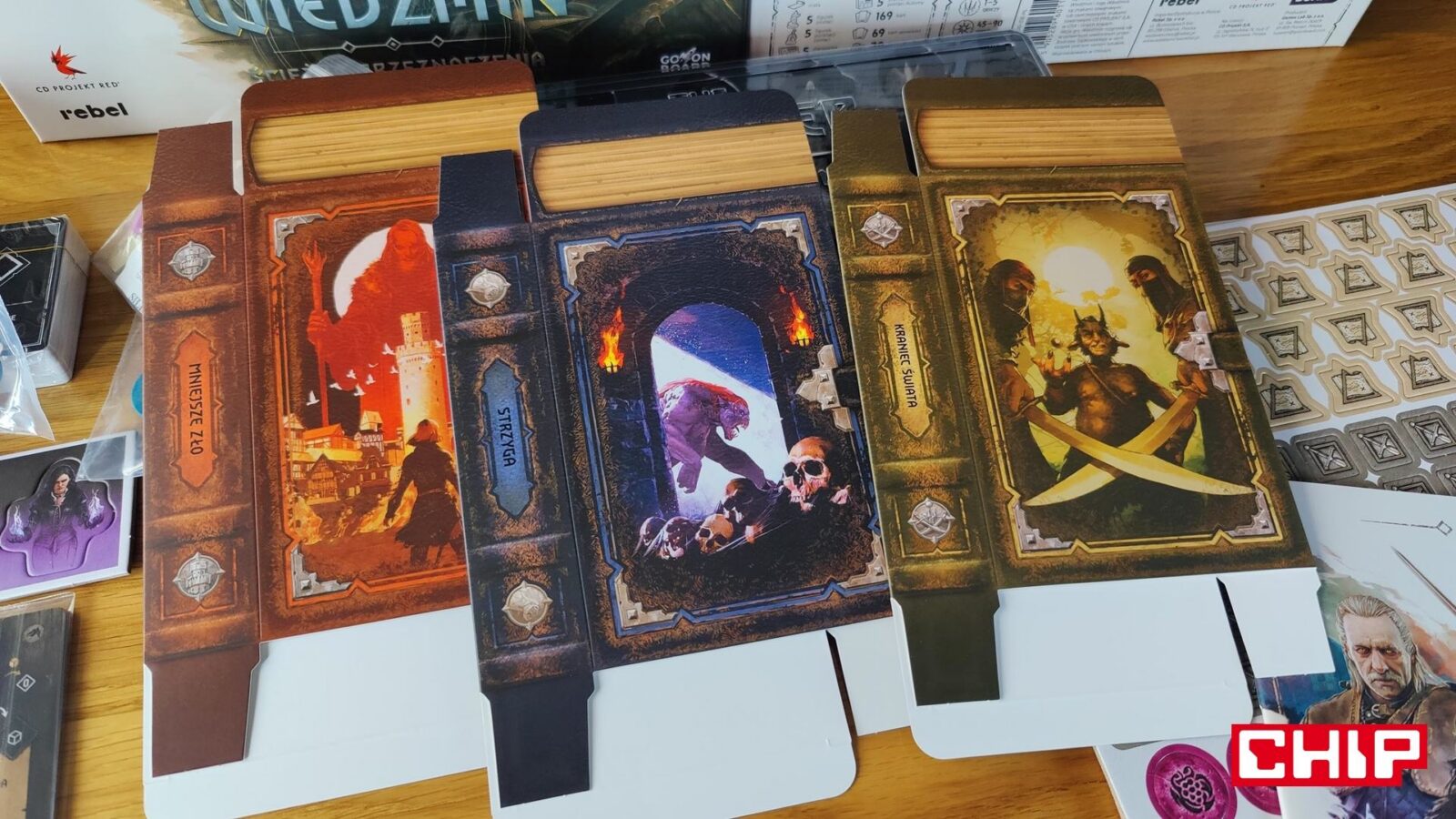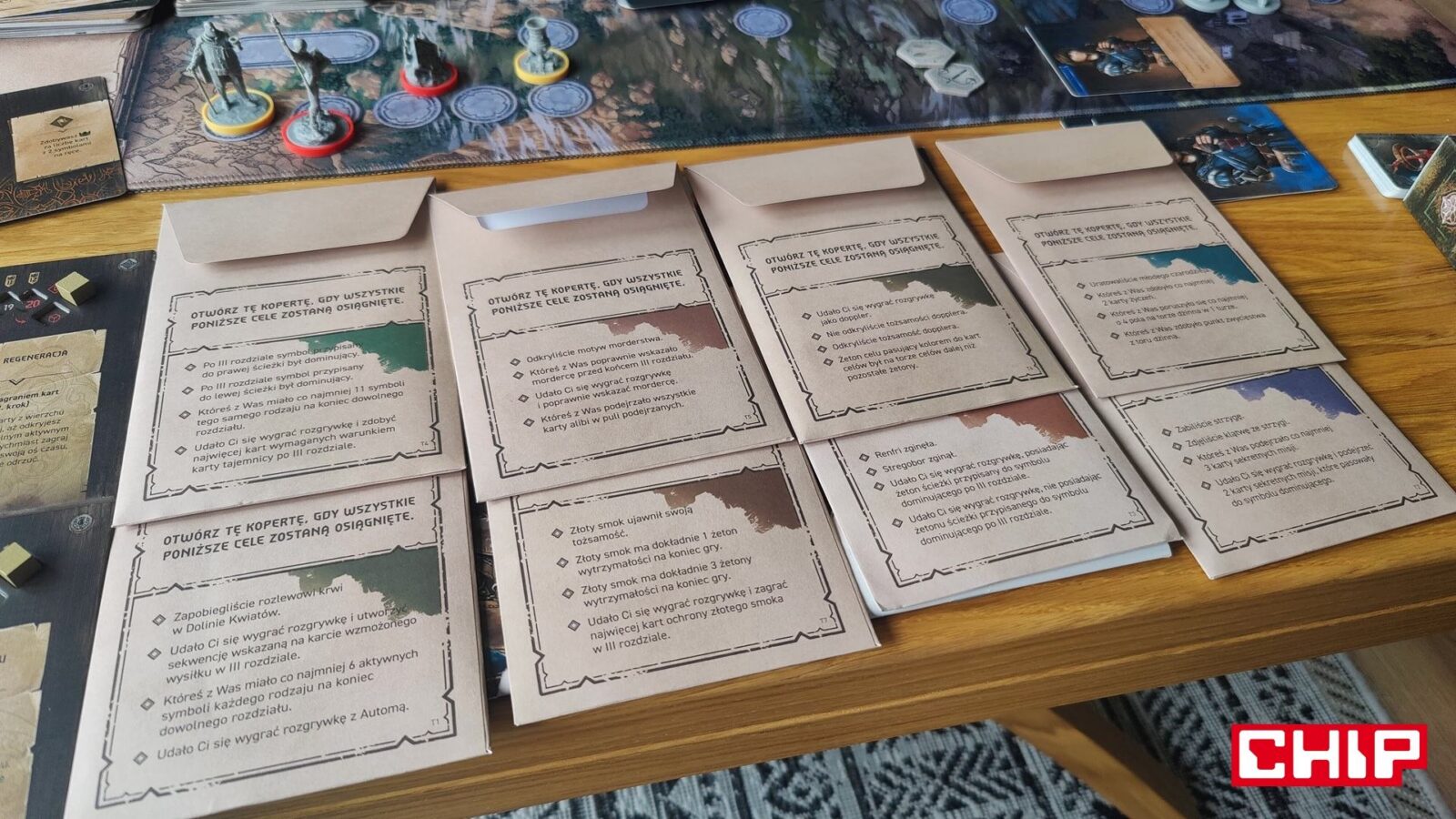 Cały komplet Gameplay All-In tej gry (dostępny niegdyś w kampanii na Gamefound) robi już ogromne wrażenie, bo dostajemy w jego ramach aż dwa wielkie i dwa mniejsze pudła pełne figurek, kart i nowych mechanik, które świetnie uzupełniają podstawową grę. Moje serce kupiły “specjalne koperty” z kartami i żetonami, które po zaliczeniu konkretnych warunków przy przechodzeniu scenariuszy, stają się częścią całej gry.